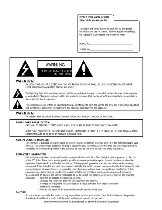 Discover Zenith TV and home video service and operating manuals, available as downloadable PDFs and binded copies. Our comprehensive guides provide setup instructions, troubleshooting tips, and maintenance advice to ensure your Zenith devices perform optimally. Browse our collection today to find the perfect manual for your model.