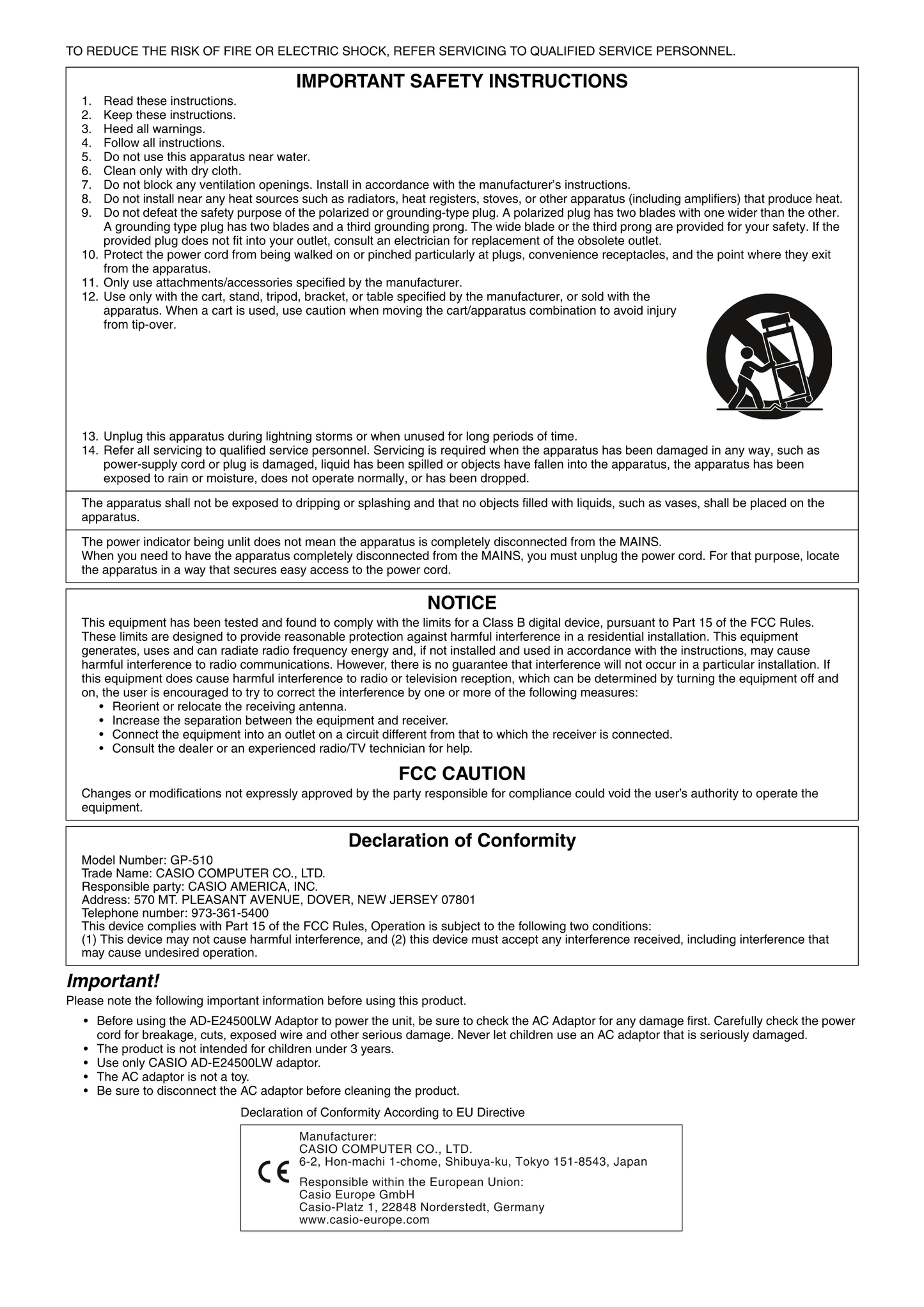 Casio GP-510 Keyboard Piano Owner's/ User Manual (Pages: 84)