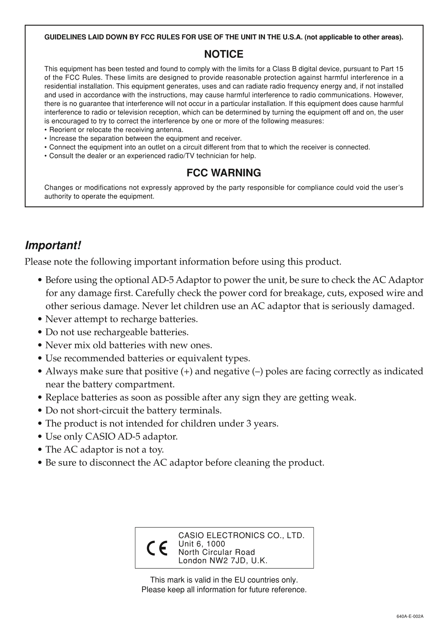 Casio LK-43, LK-44, LK-45 & LK-46 Keyboard Piano Owner's/ User Manual (Pages: 44)