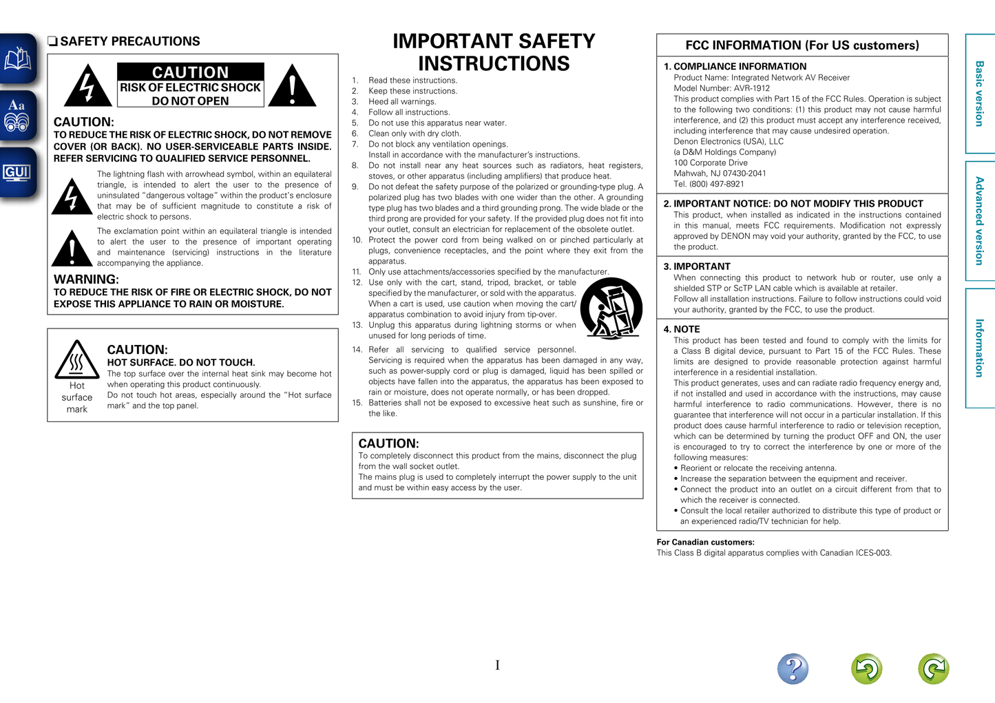 Discover the Denon AVR-1912 AV Receiver Owner's/ User Manual (Pages: 133) manual from Denon. This manual includes nan pages of detailed information. Choose to download it or get a professionally printed copy from Manuali.