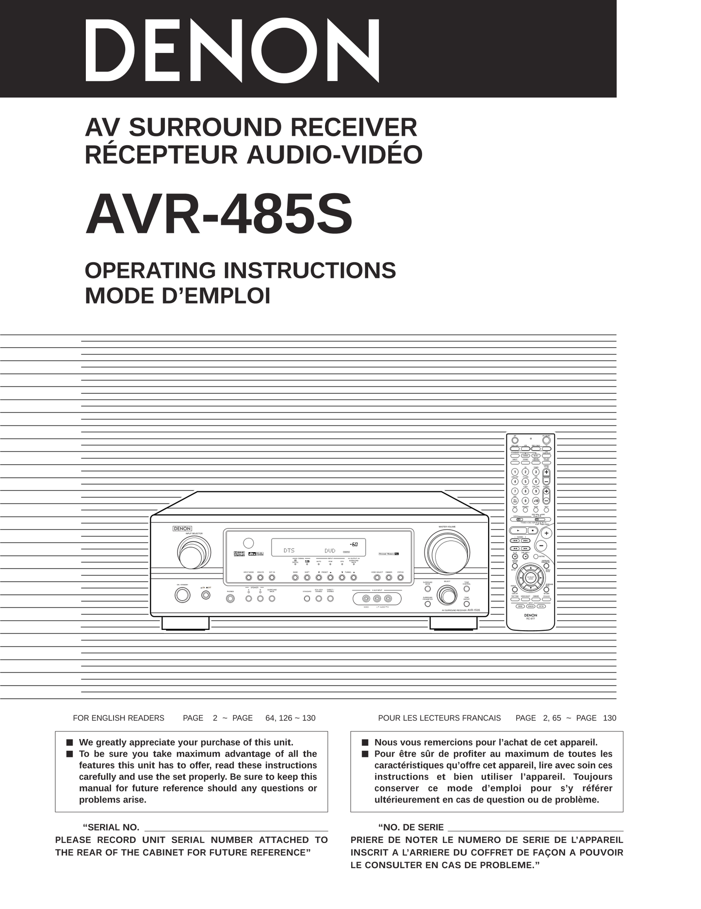 Download or print the Operating Manual manual for Denon AVR-485 S AV Receiver Owner's/ User Manual (Pages: 71) today. This manual includes nan pages of detailed information. Choose to download it or get a professionally printed copy from Manuali.