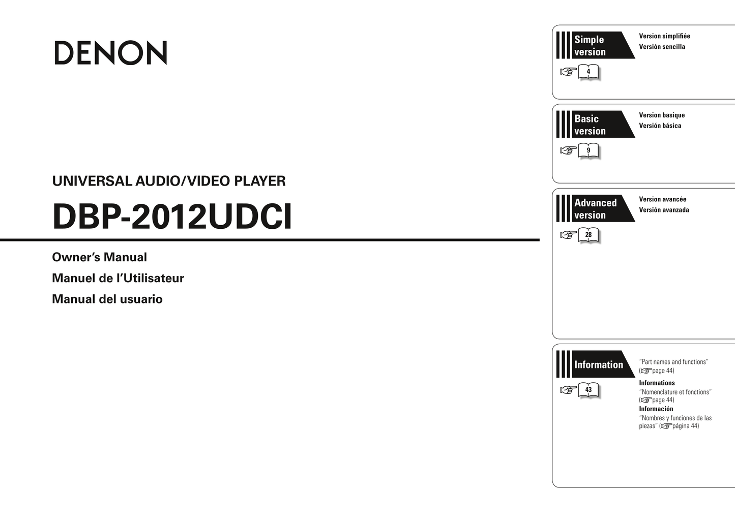 Unlock the full potential of your Denon Denon DBP-2012UDCI Blu-Ray/ DVD Player Owner/ User Manual (Pages: 74), an essential Operating Manual for detailed guidance. Available at Manuali with both printed and digital versions. Enjoy our professional printing service for a quality manual tailored to your needs. With 74.0 pages, this manual covers all the essential information.