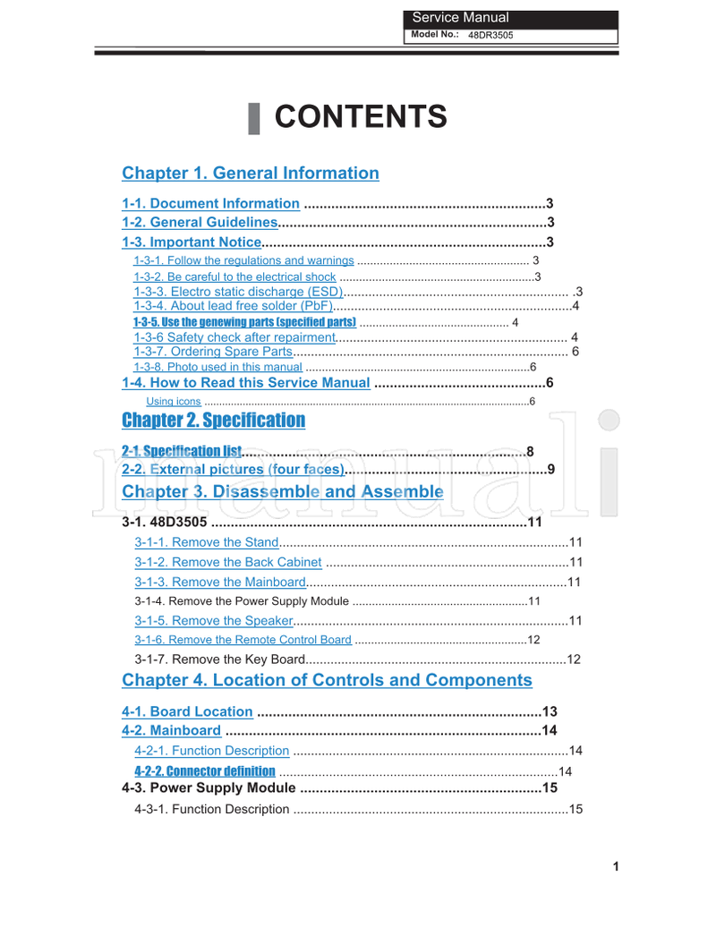 For models: 48DR3505, MSD3393LU