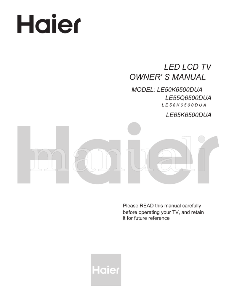 Haier LE50K6500DUA LE55Q6500DUA LE65K6500DUA (30 pages) TV Operating Manual