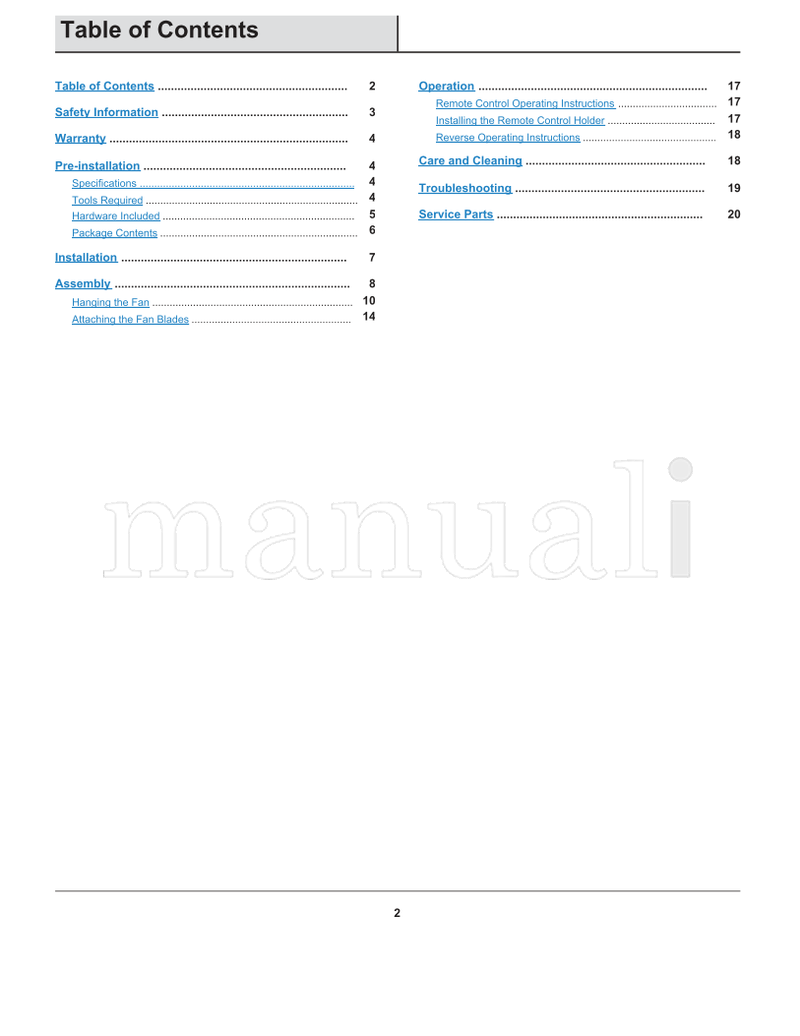 Uncover the full potential of Hampton Bay YG098-NM (21 pages) Ceiling Fan Operating Manual. This Ceiling Fan Operating Manual by Hampton Bay is a must-have for users seeking clarity and thorough details. The manual consists of 21 pages, providing extensive information. At Manuali, we specialize in offering high-quality printed and digital manuals, ensuring you have the support you need.