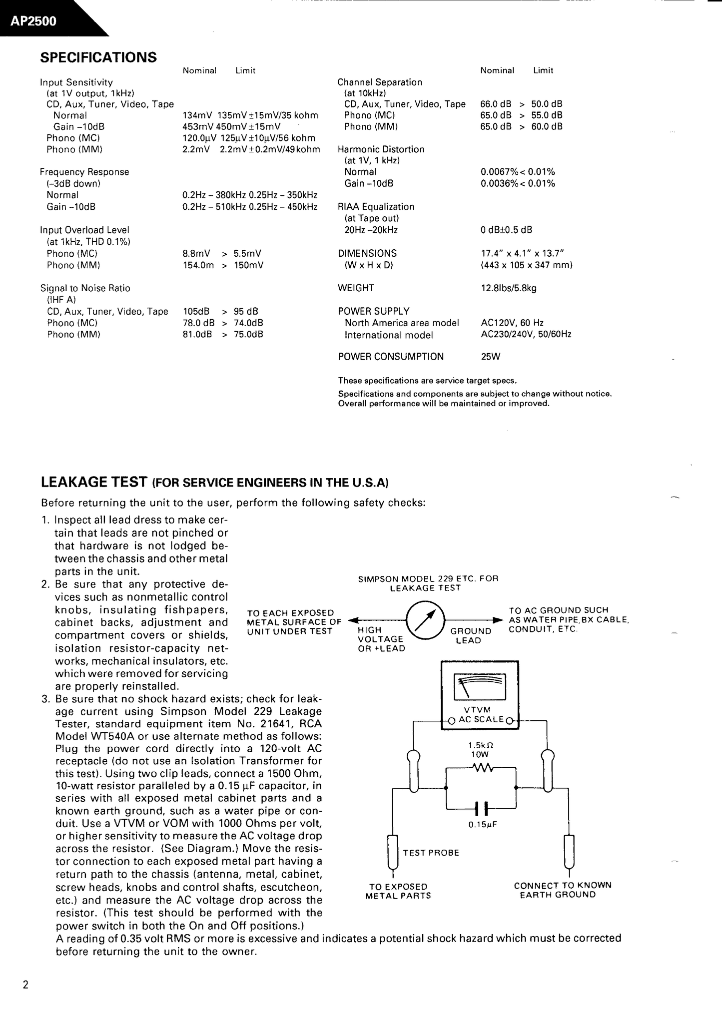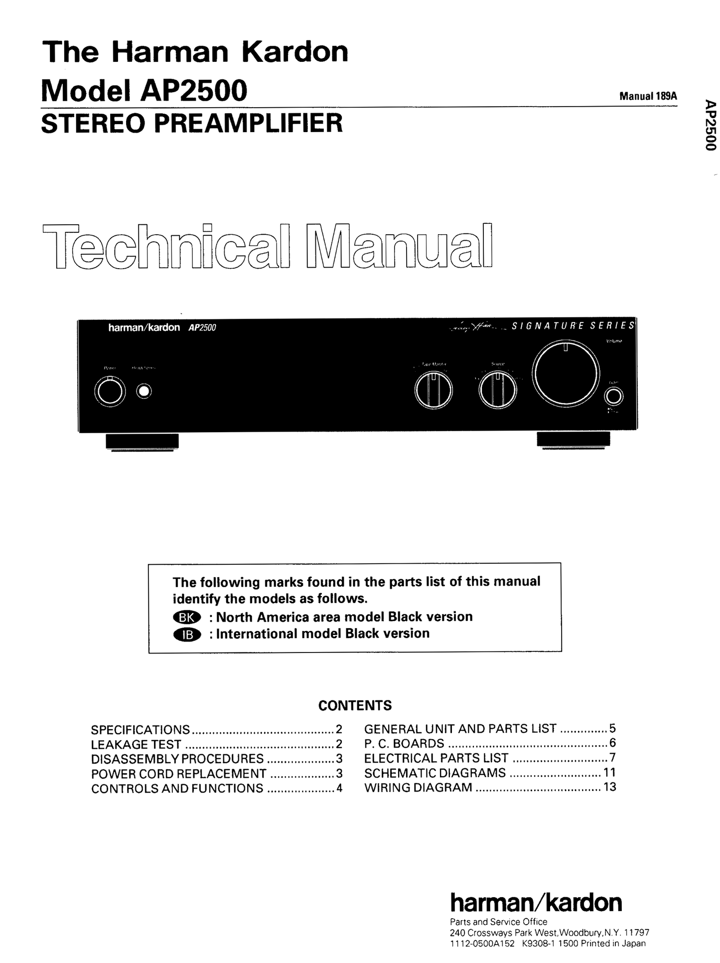 Harman/ Kardon AP2500 Stereo Preamplifier Owner & Service Manual (Pages: 27)