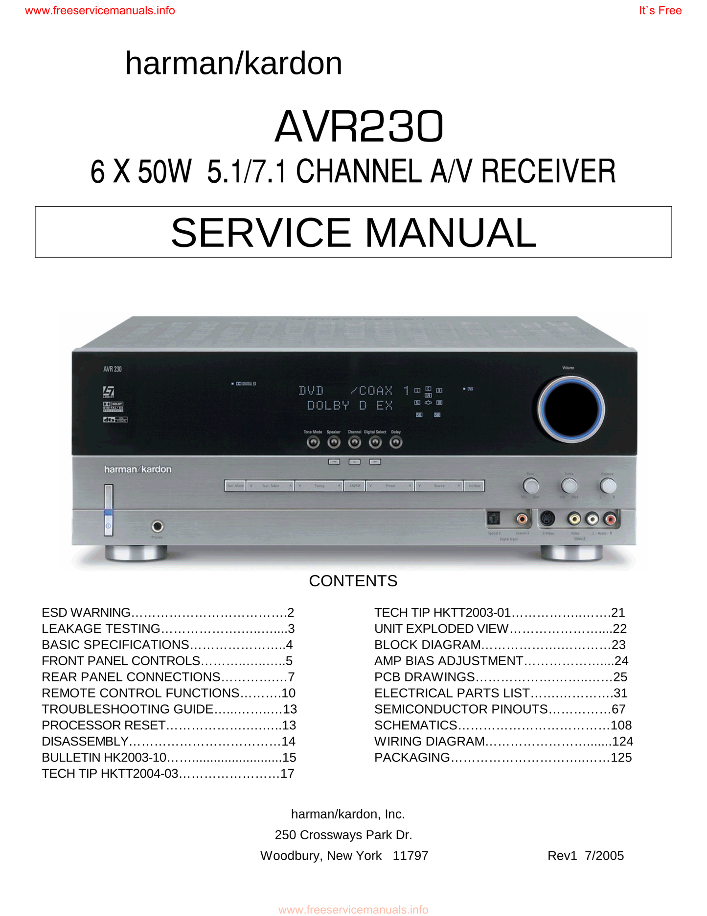 Your Harman/ Kardon AVR230 AV Receiver Service Manual (Pages: 125) manual is available now for immediate download. This manual includes nan pages of detailed information. Choose to download it or get a professionally printed copy from Manuali.