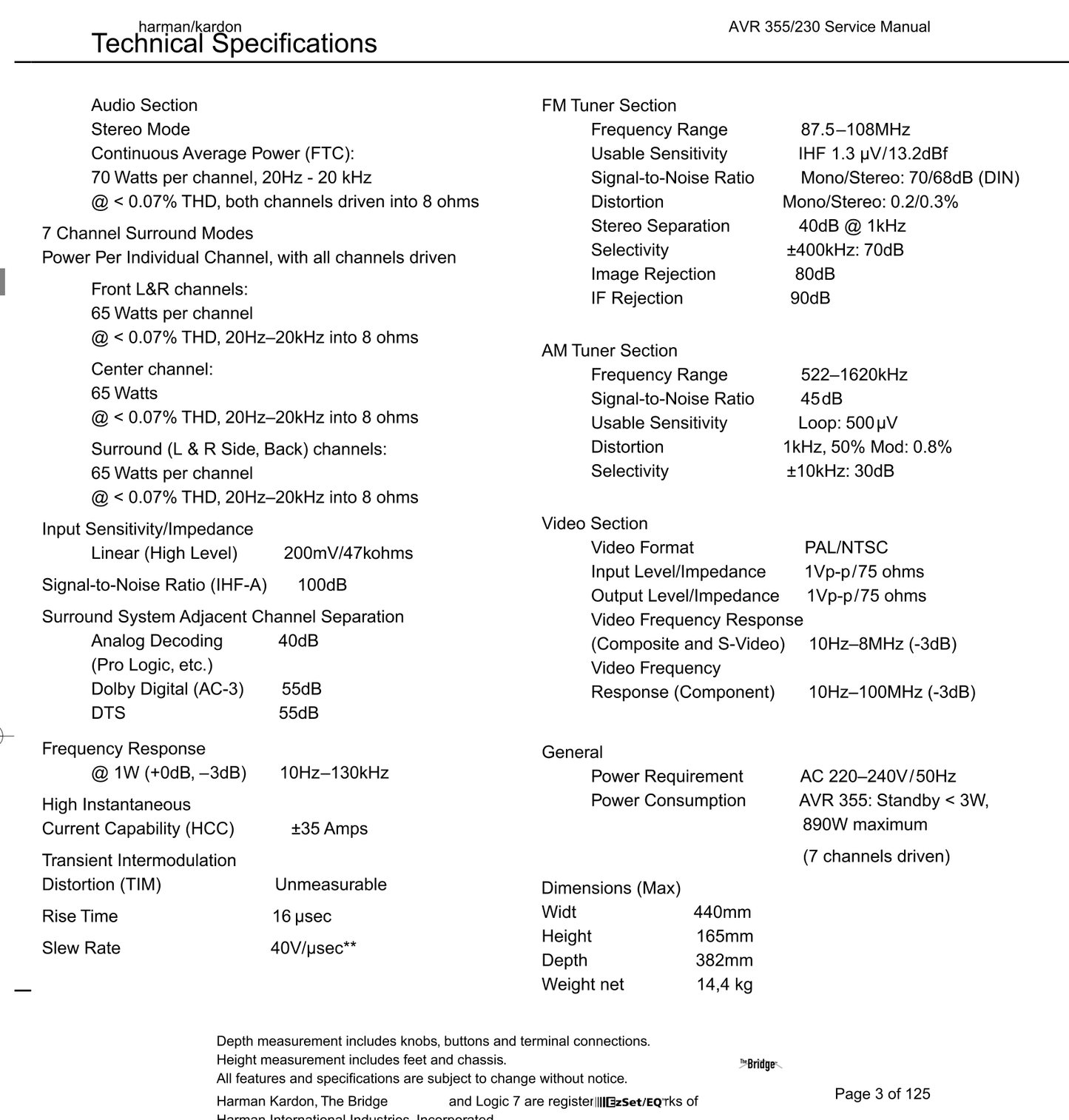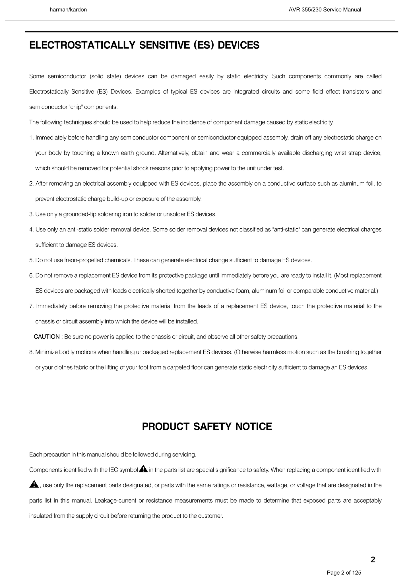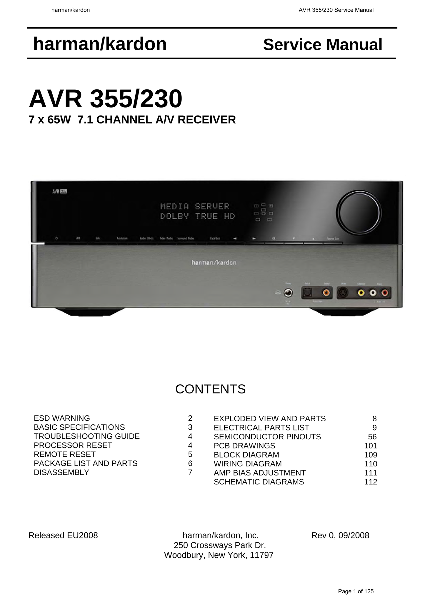 Harman/ Kardon AVR355/230 AV Receiver Service Manual (Pages: 125)