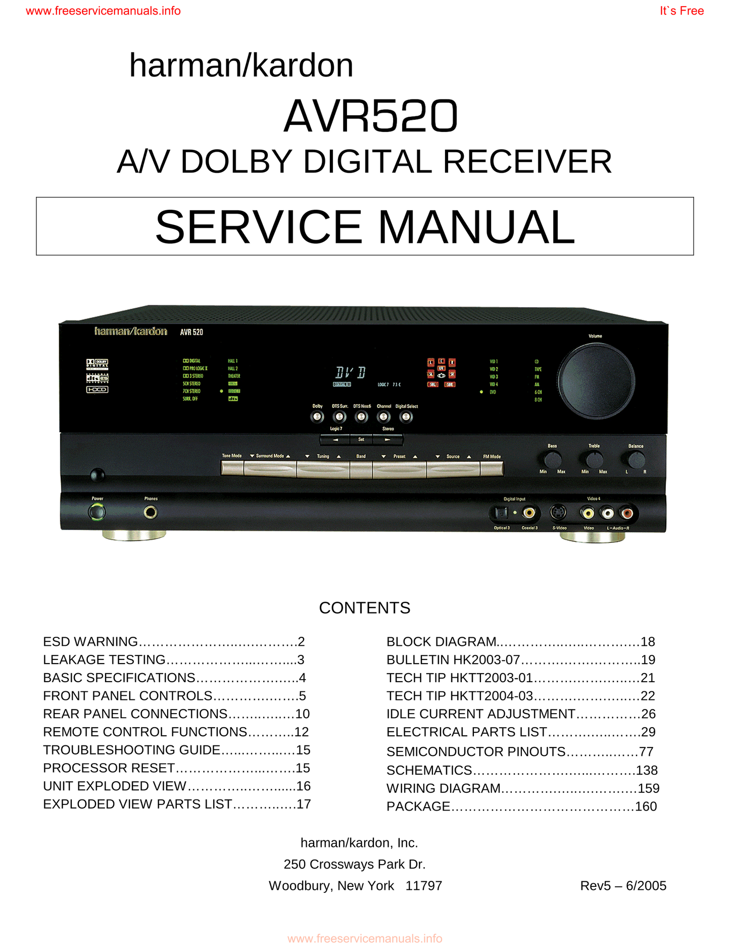 Find out more about the Harman/ Kardon AVR520 AV Receiver Service Manual (Pages: 160) with this full manual from Harman Kardon. This manual includes nan pages of detailed information. Choose to download it or get a professionally printed copy from Manuali.