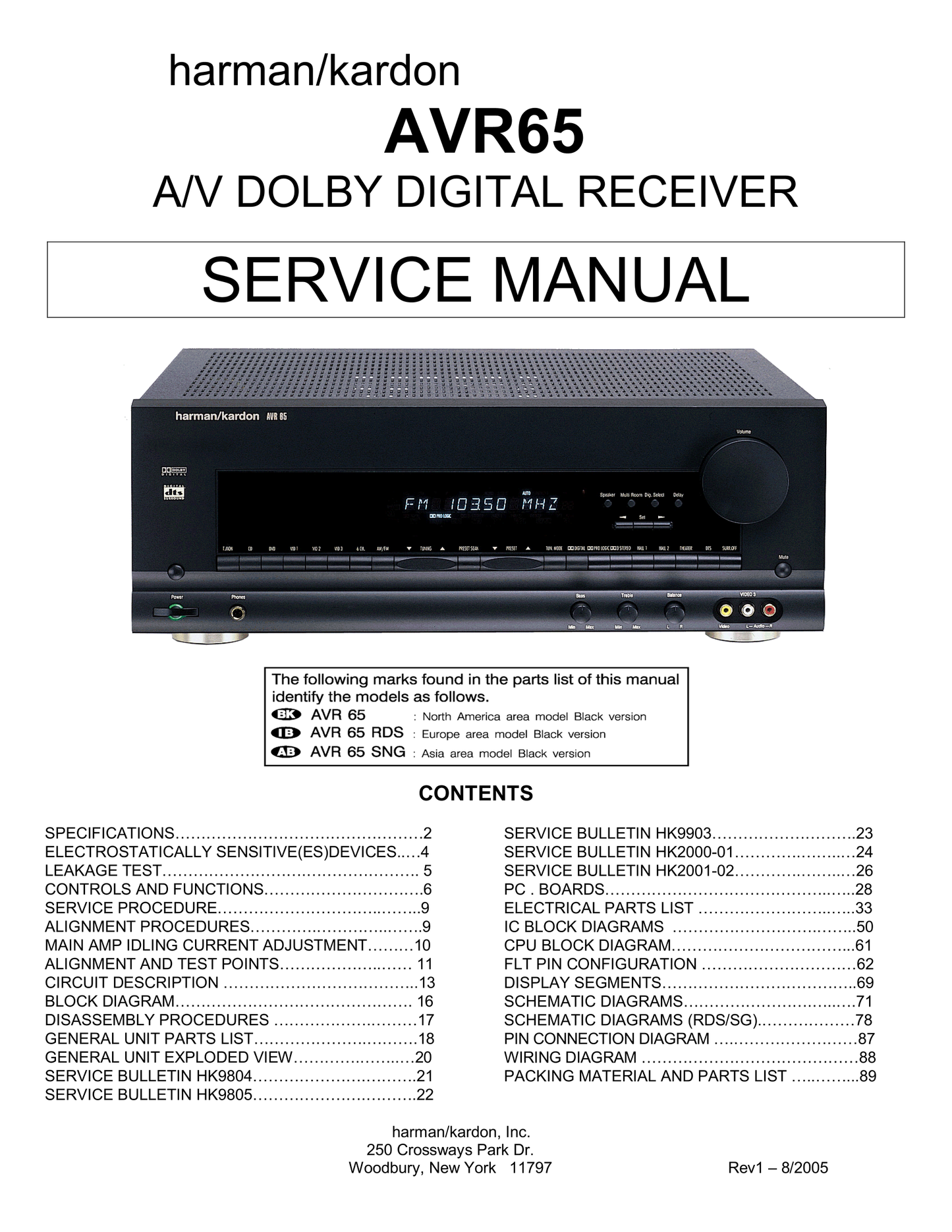 Harman/ Kardon AVR65 AV Receiver Service Manual (Pages: 89)