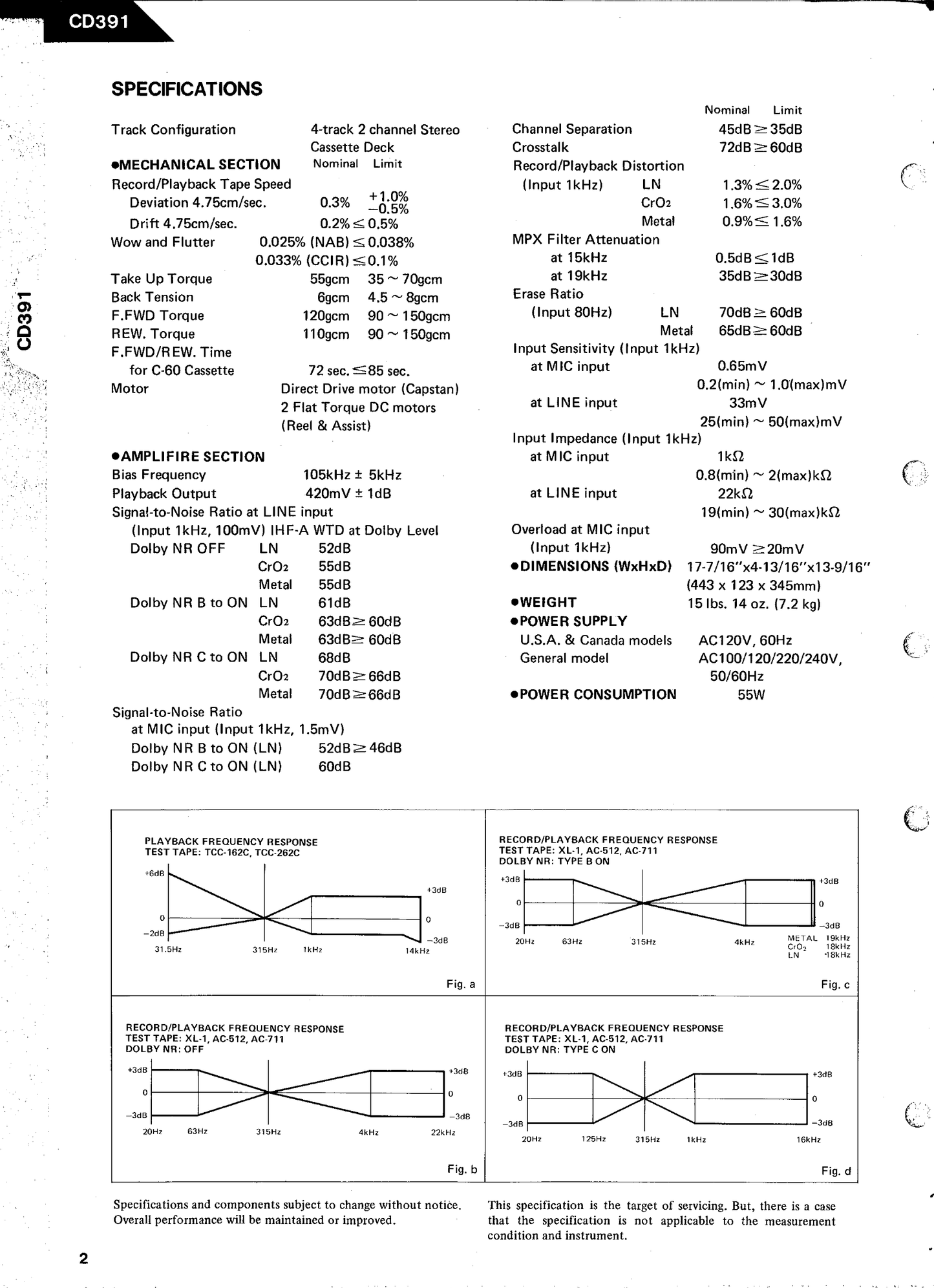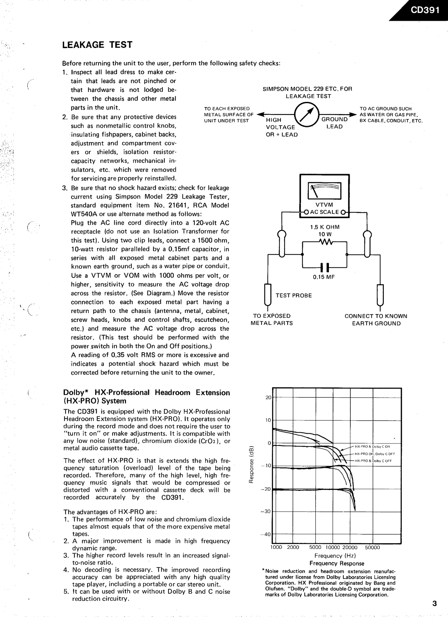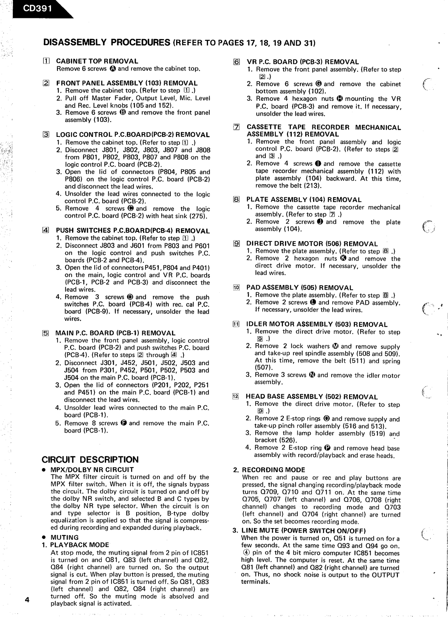 Harman/ Kardon CD391 Ultra Wideband Linear Phase Cassette Deck Service Manual (Pages: 35)