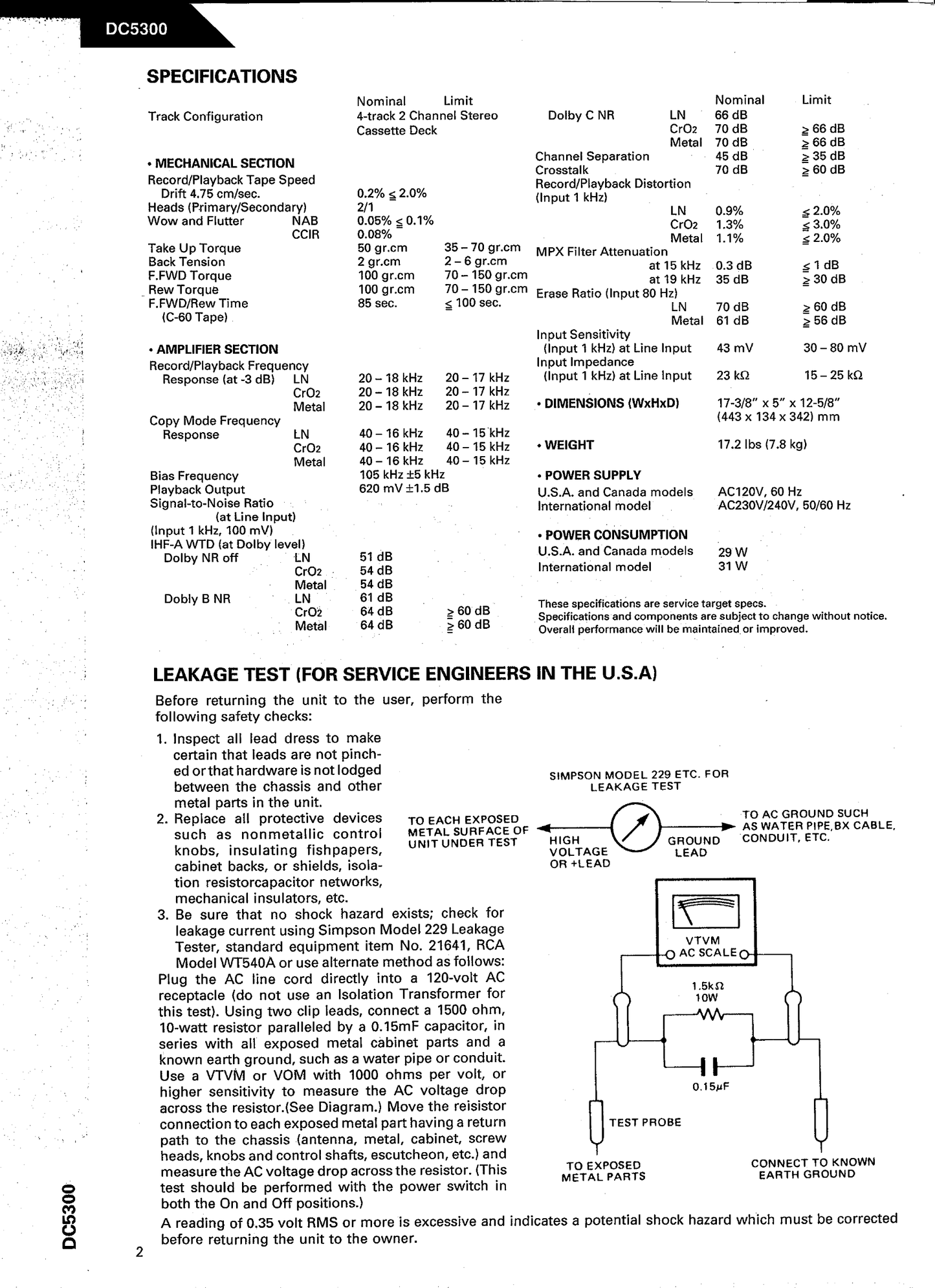 Harman/ Kardon DC5300 Dual Cassette Deck Service Manual (Pages: 55)