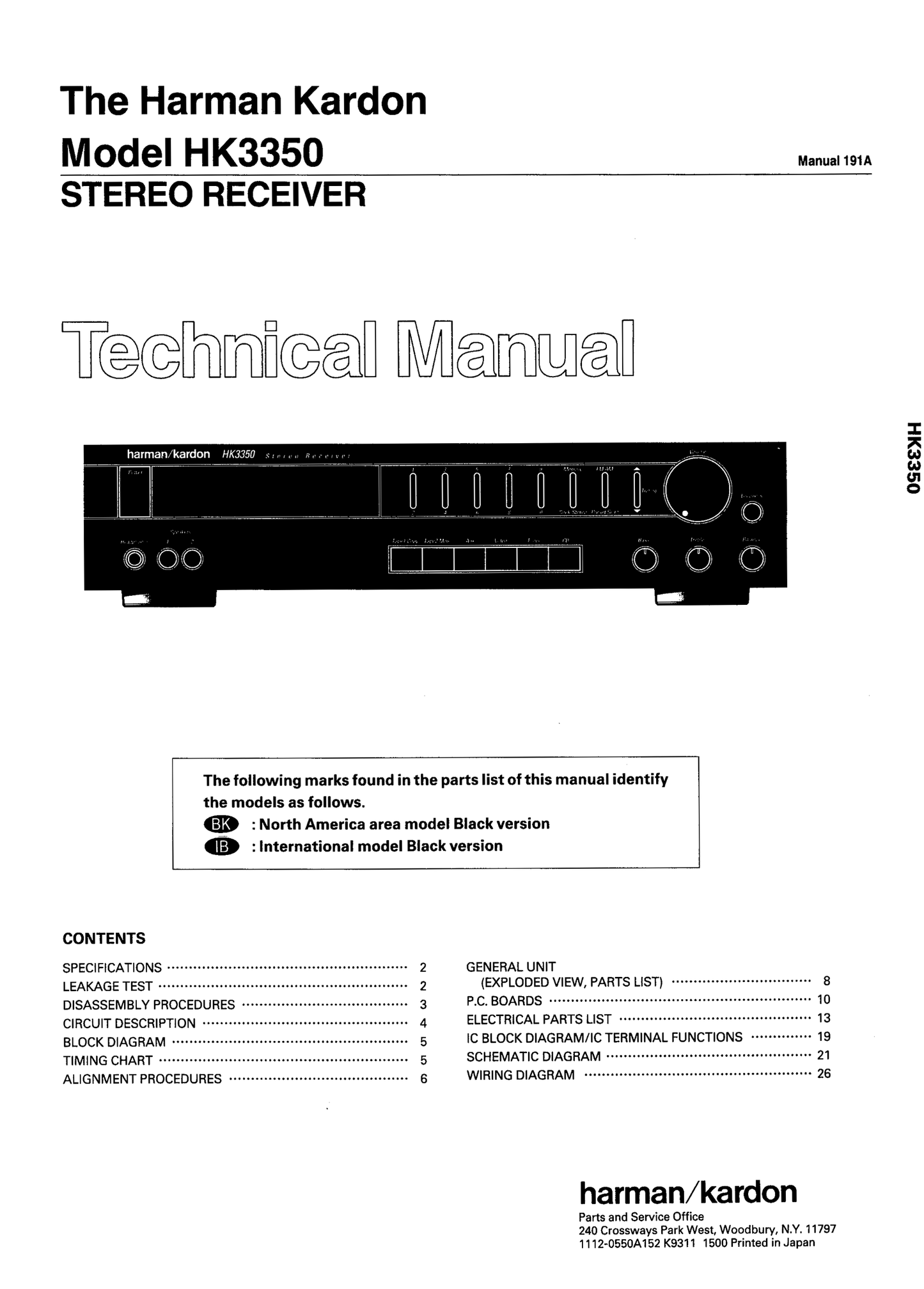 Everything you need to know about the Harman/ Kardon HK3350 Stereo Receiver Service Manual (Pages: 41) is in this manual. This manual includes nan pages of detailed information. Choose to download it or get a professionally printed copy from Manuali.