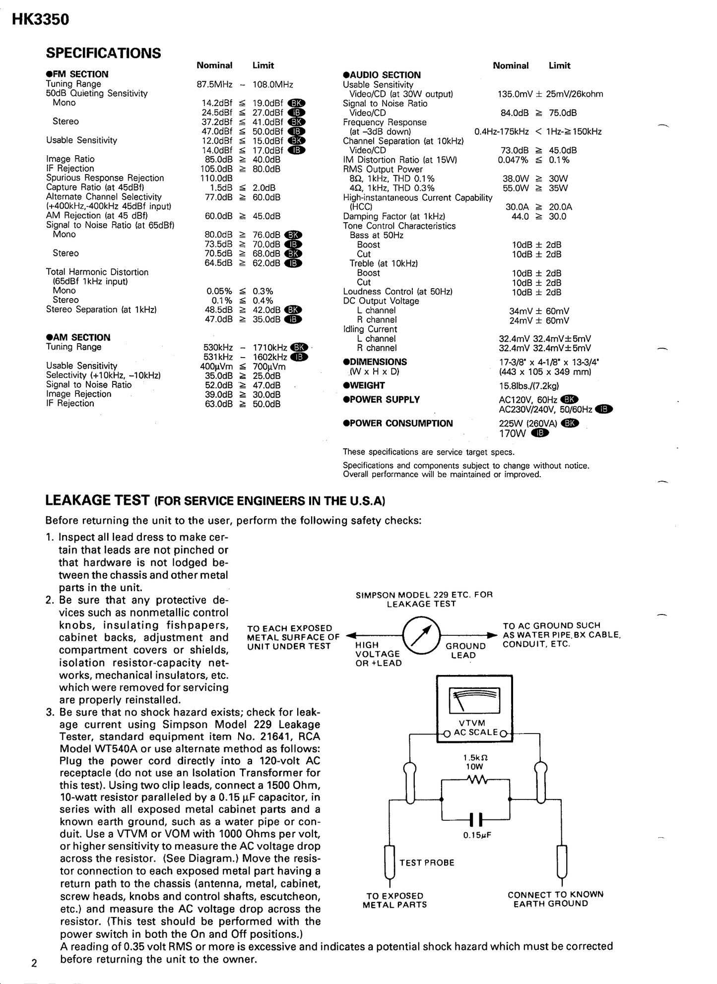 Harman/ Kardon HK3350 Stereo Receiver Service Manual (Pages: 41)