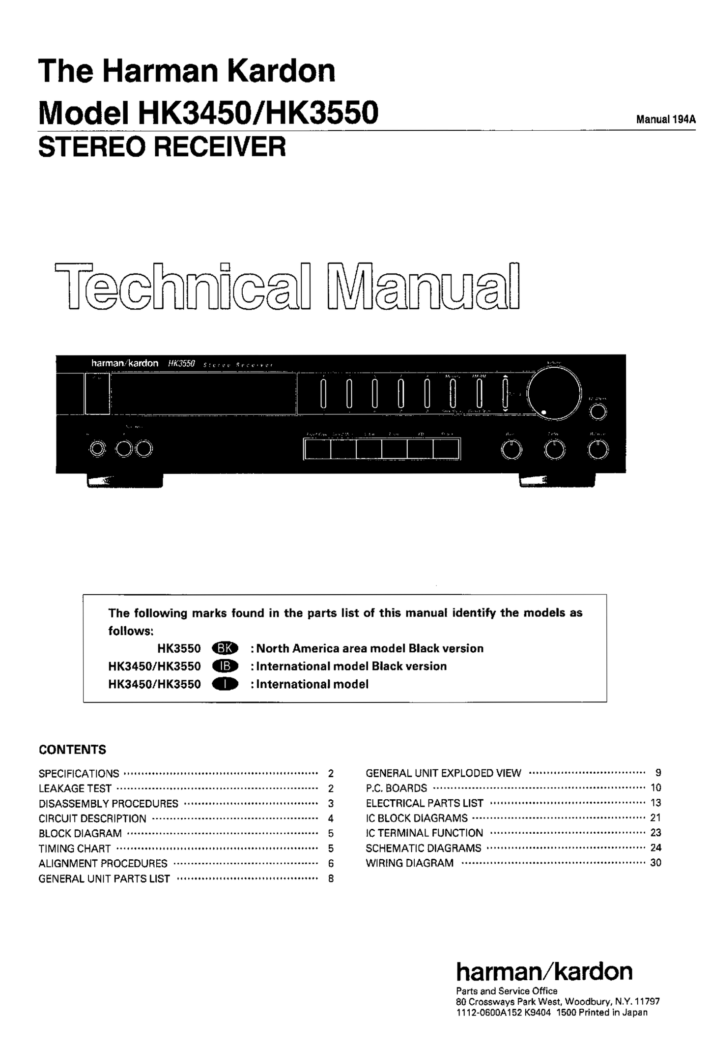 Your Harman/ Kardon HK3450 & HK3550 Stereo Receiver Service Manual (Pages: 44) manual is available now for immediate download. This manual includes nan pages of detailed information. Choose to download it or get a professionally printed copy from Manuali.