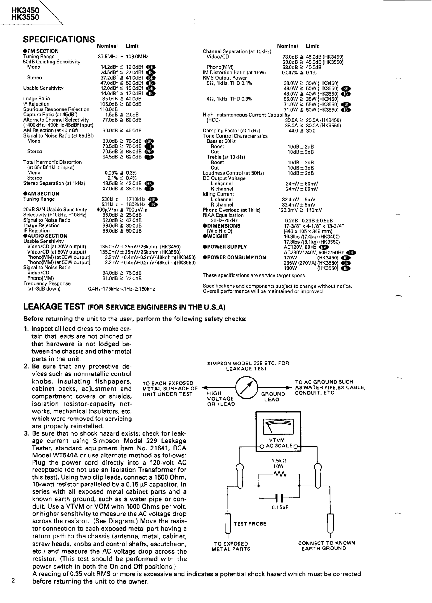Harman/ Kardon HK3450 & HK3550 Stereo Receiver Service Manual (Pages: 44)