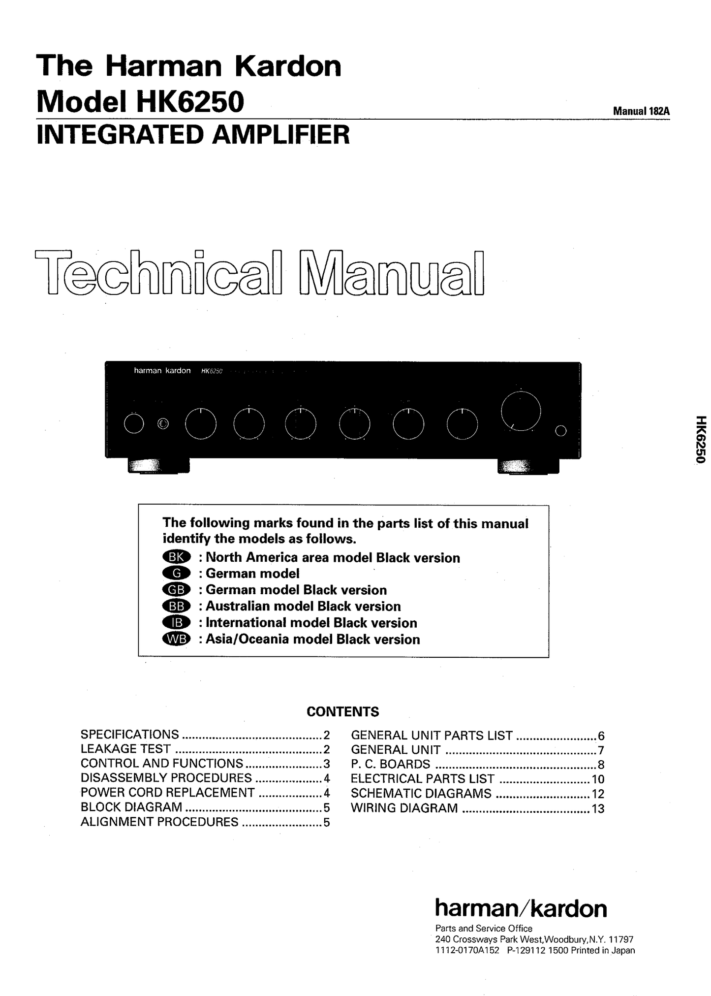 Harman/ Kardon HK6250 Amplifier Service Manual (Pages: 34)