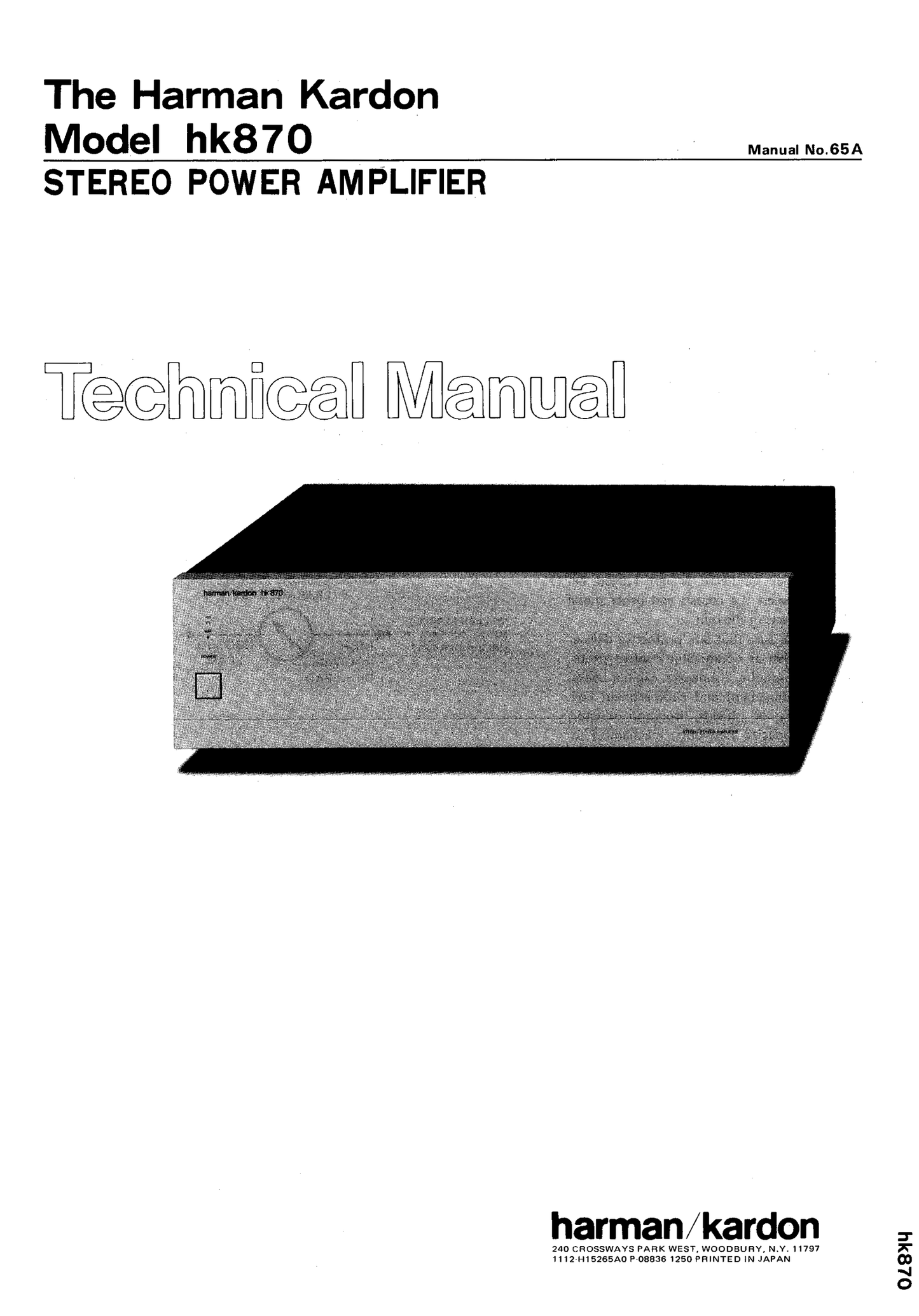 Find the Harman Kardon Harman/ Kardon HK870 Amplifier Service Manual (Pages: 26), a must-have Service Manual available exclusively at Manuali. Available at Manuali with both printed and digital versions. Enjoy our professional printing service for a quality manual tailored to your needs. With 26 pages, this manual covers all the essential information.