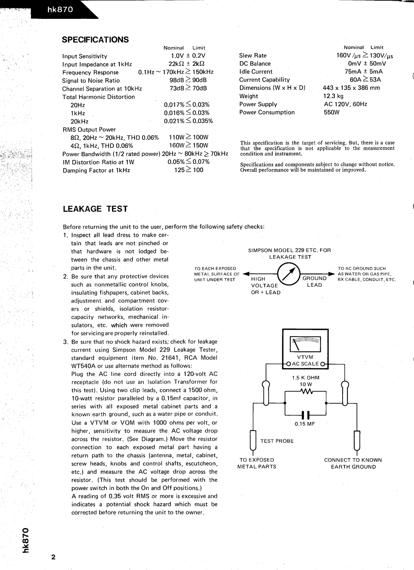 Harman/ Kardon HK870 Amplifier Service Manual (Pages: 26)
