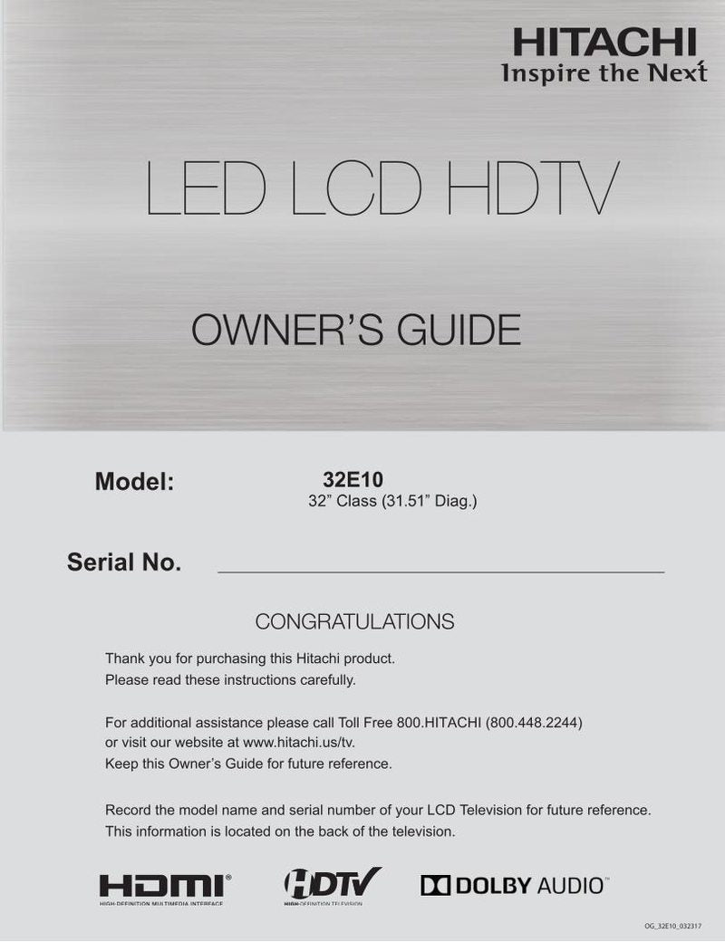 Find detailed instructions for the Hitachi Hitachi 32 E 10 TV Operating Manual, a top-notch Operating Manual available at Manuali. You can receive this manual in either a professional printed format or as a digital download. This guide has nan pages, ensuring complete coverage of all necessary information.