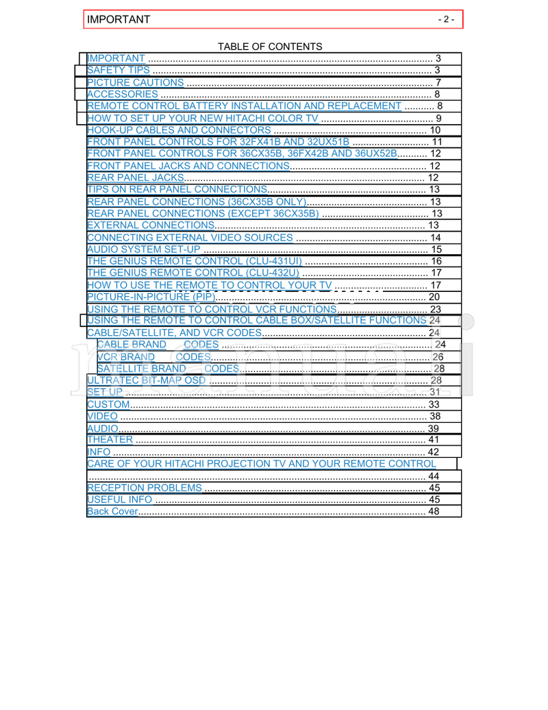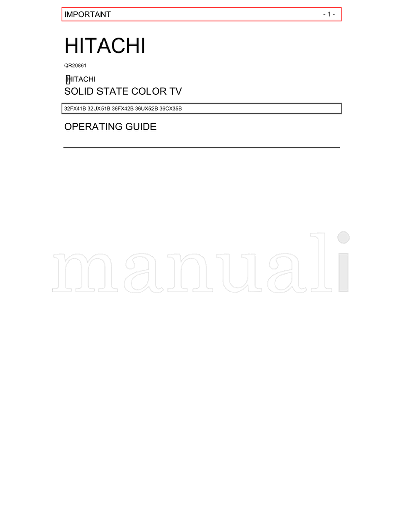 Hitachi QR20861 (48 pages) TV Operating Manual