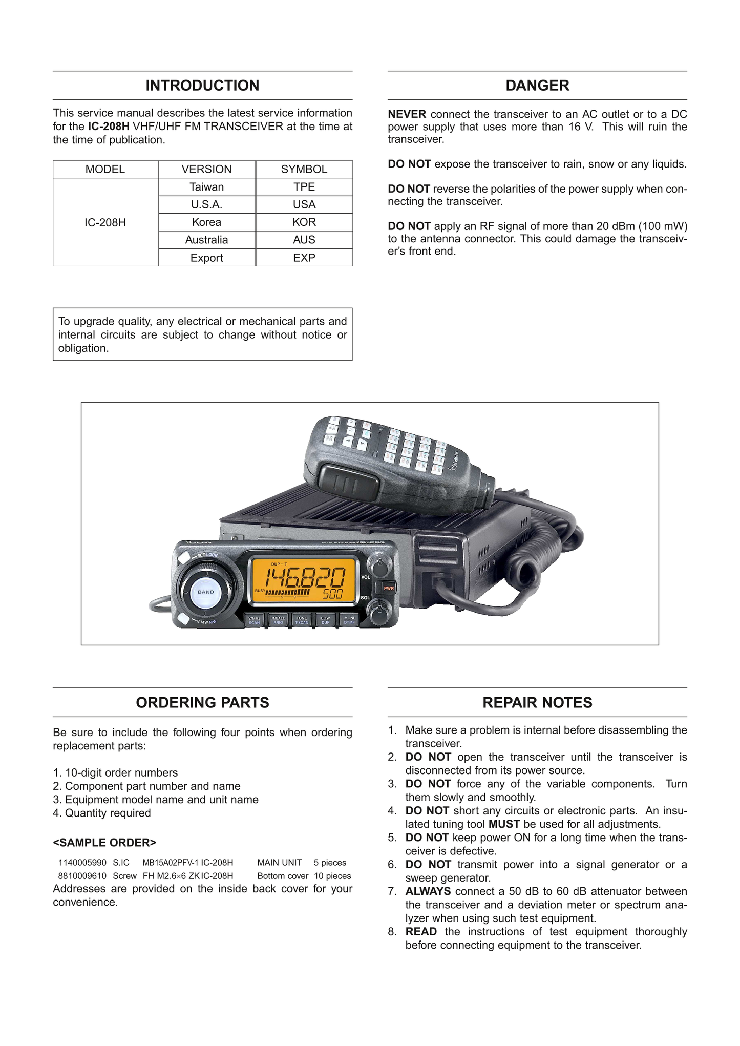 Icom IC-208 H FM Transceiver Service Manual (Pages: 52)