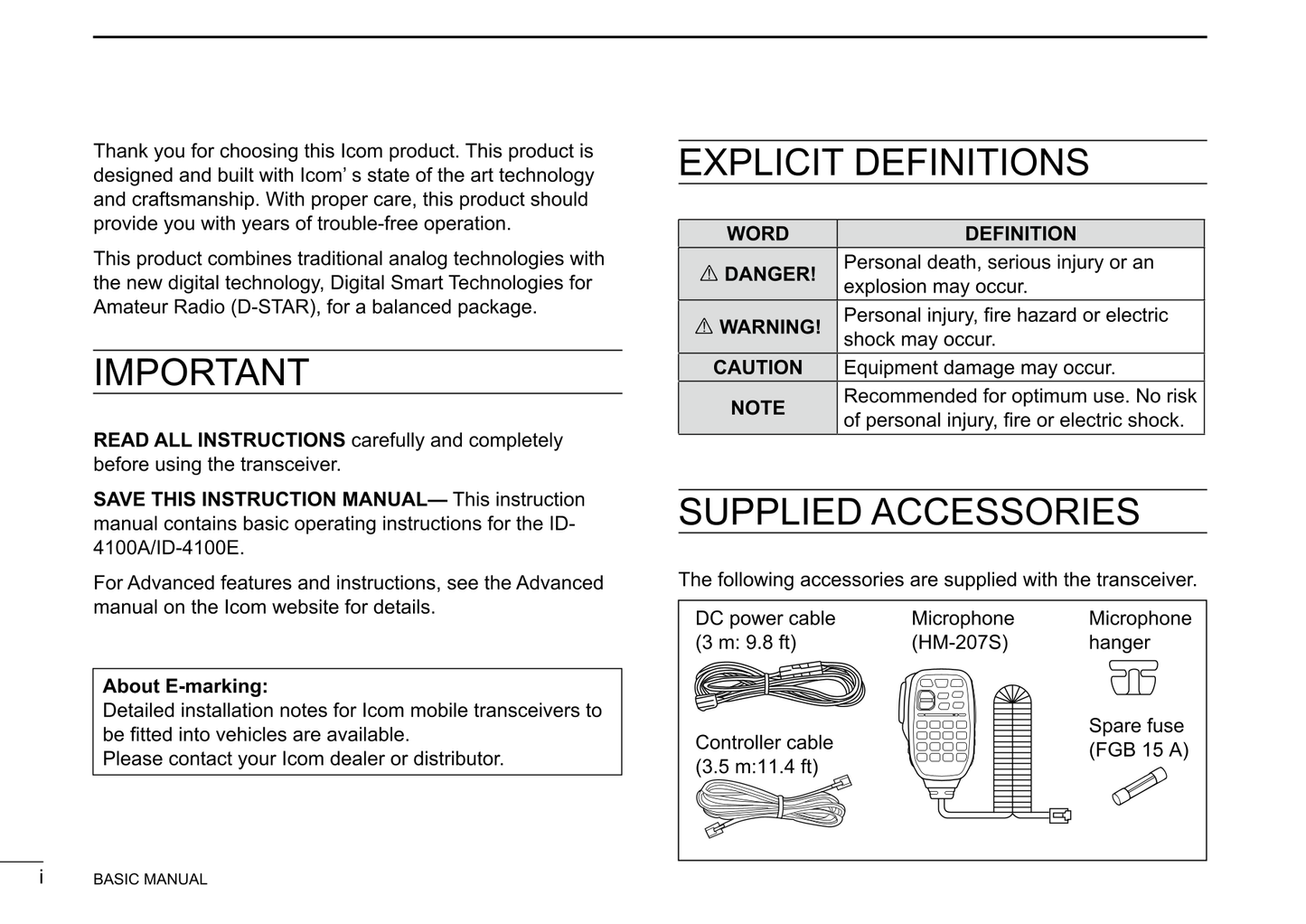 Icom ID-4100 A & E Dual Band Transceiver Owner/ User Manual (Pages: 273)