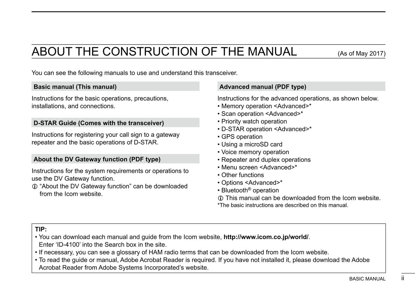 All the details you need about the Icom ID-4100 A & E Dual Band Transceiver Owner/ User Manual (Pages: 273) from Icom are included. This manual includes 273 pages of detailed information. Choose to download it or get a professionally printed copy from Manuali.