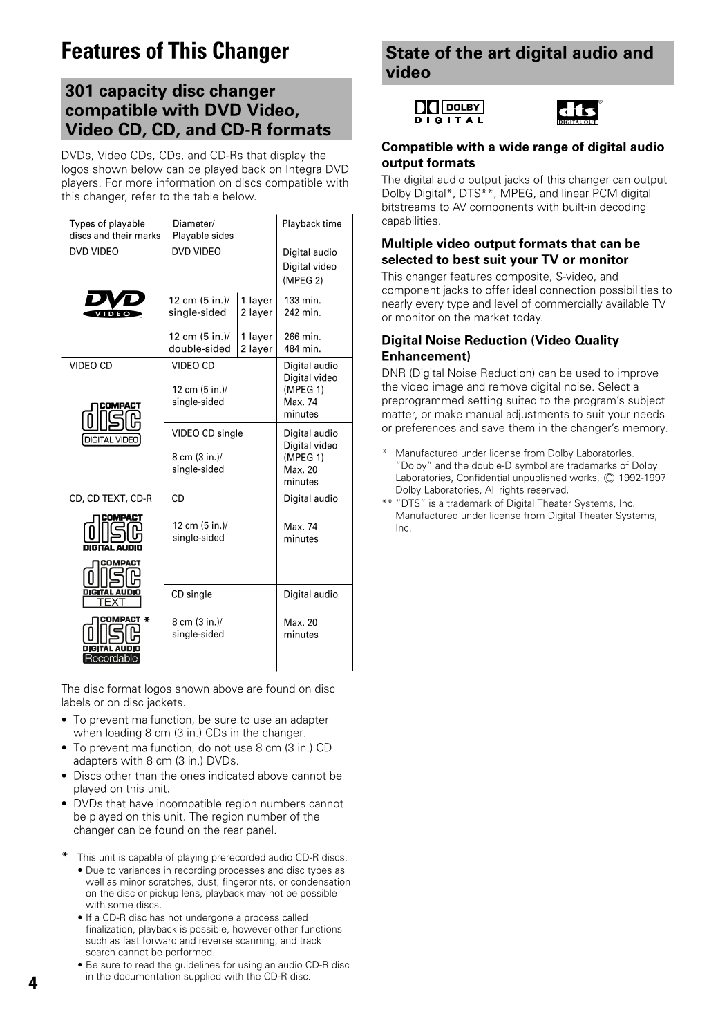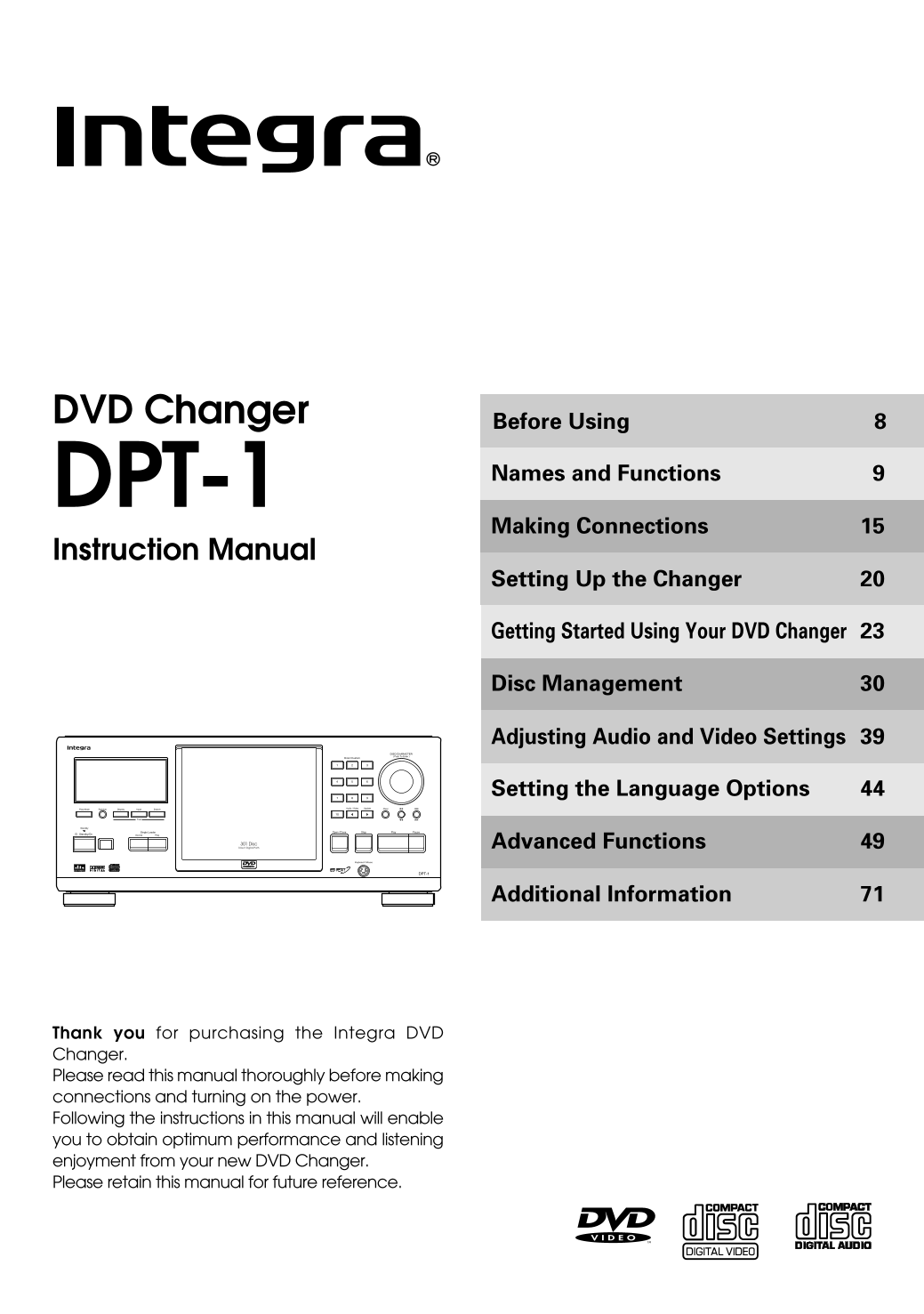 Integra DPT-1 DVD Player Changer Owner's/ User Manual (Pages: 80)
