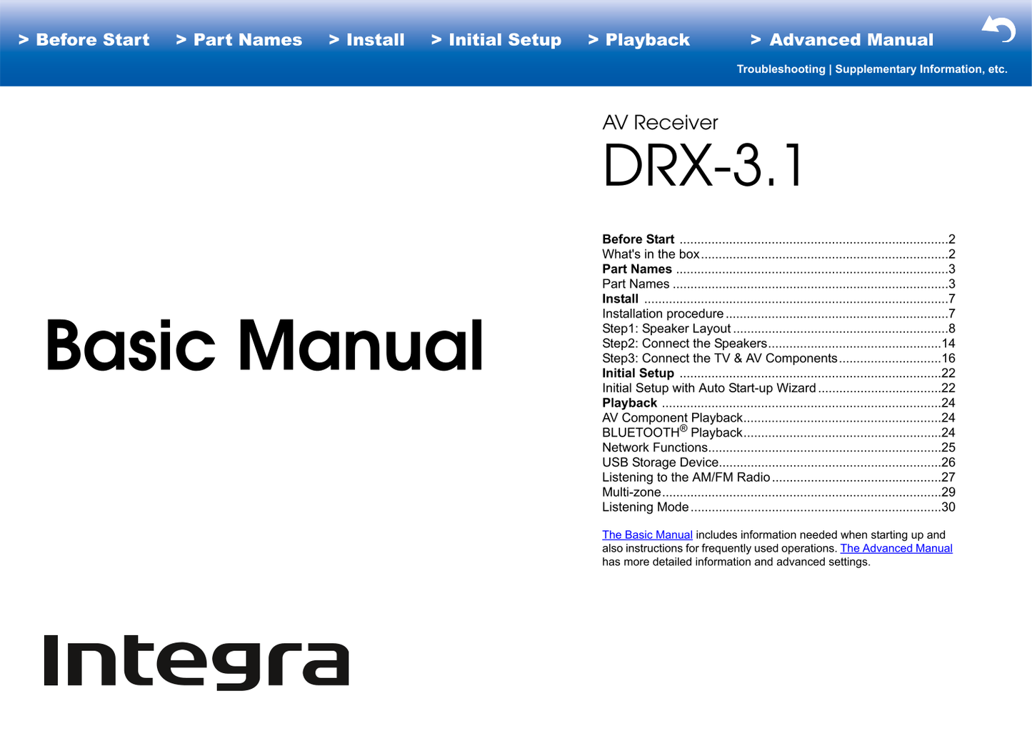 Discover the Integra DRX-3.1 AV Receiver Owner's/ User Manual (Pages: 99) manual from Integra. This manual includes nan pages of detailed information. Choose to download it or get a professionally printed copy from Manuali.