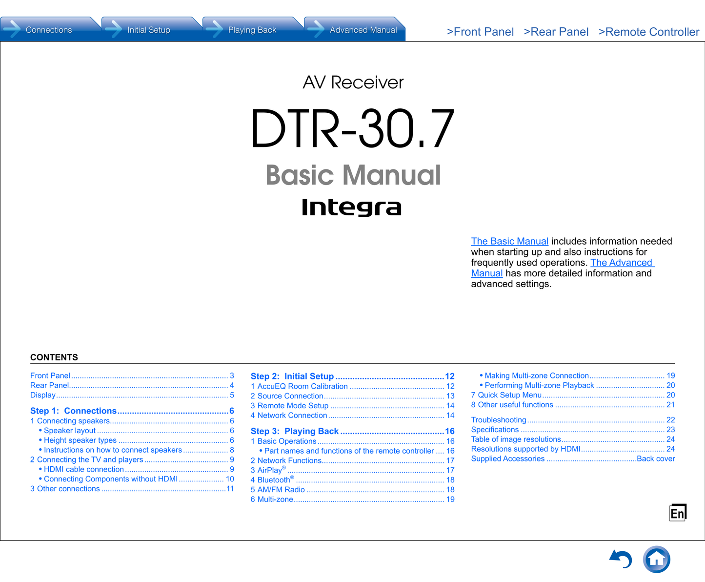 Looking for the Integra DTR-30.7 AV Receiver Owner's/ User Manual (Pages: 133) guide? Find it here. This manual includes nan pages of detailed information. Choose to download it or get a professionally printed copy from Manuali.