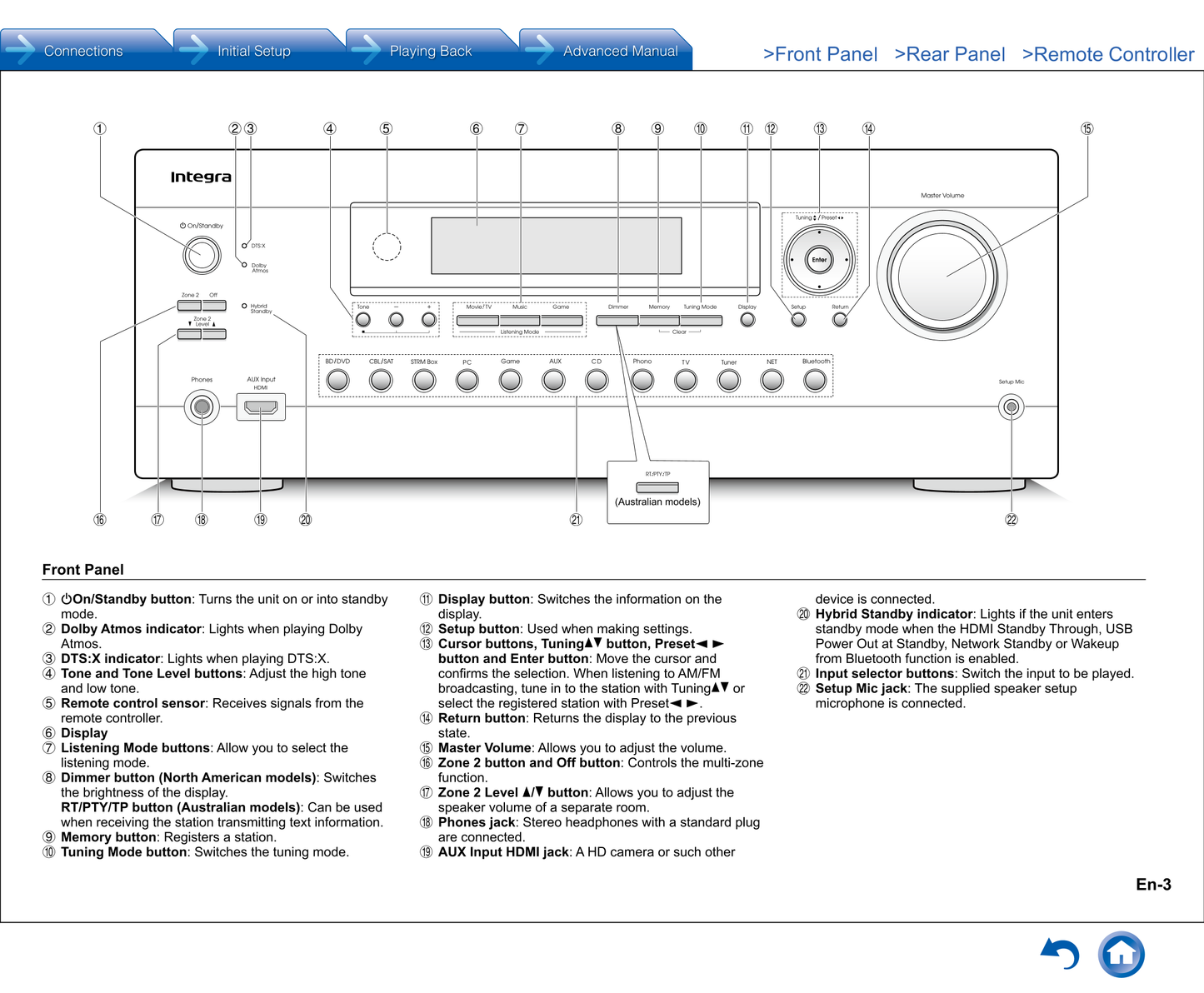 Integra DTR-30.7 AV Receiver Owner's/ User Manual (Pages: 133)
