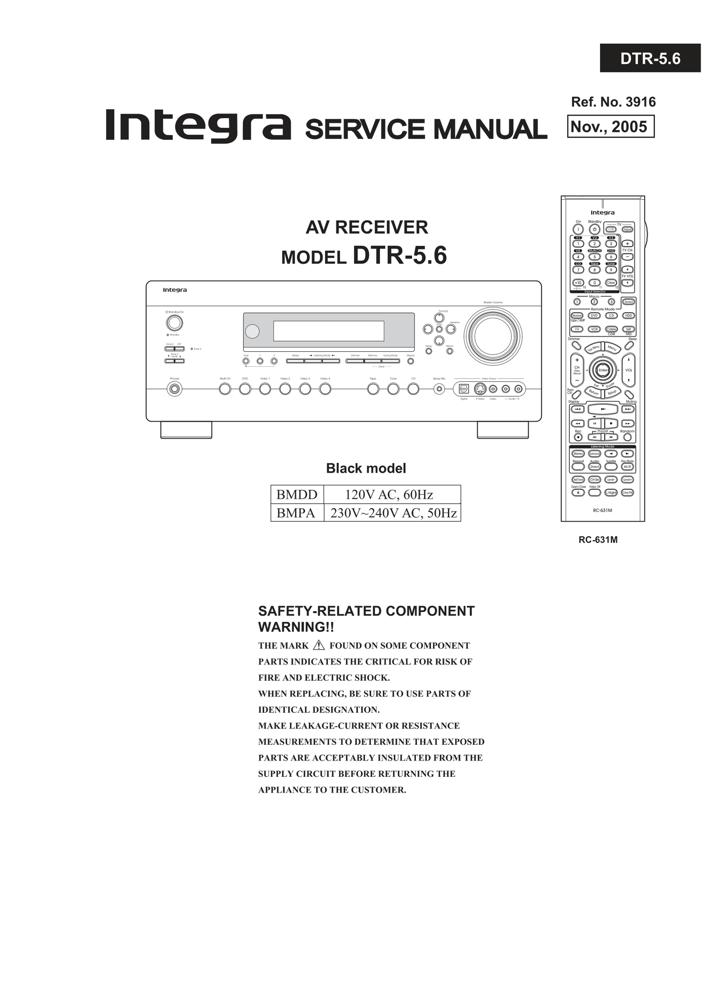 Get instant access to the Integra DTR-5.6 AV Receiver Service Manual (Pages: 114) manual from Integra. This manual includes nan pages of detailed information. Choose to download it or get a professionally printed copy from Manuali.