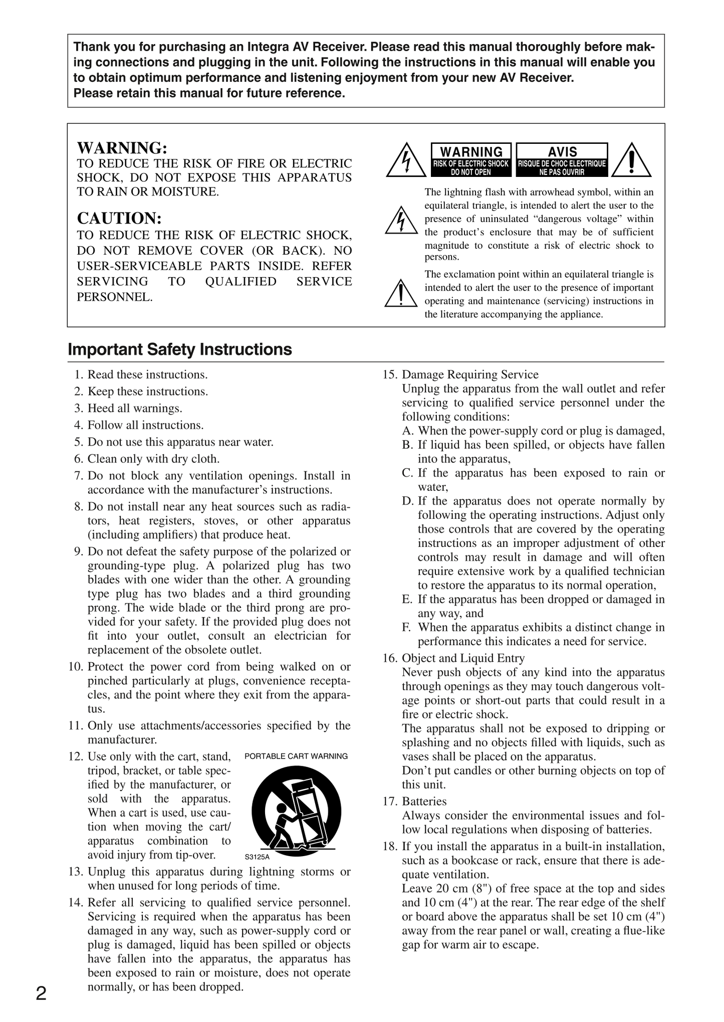 Integra DTR-5.9 AV Receiver Owner's/ User Manual (Pages: 116)