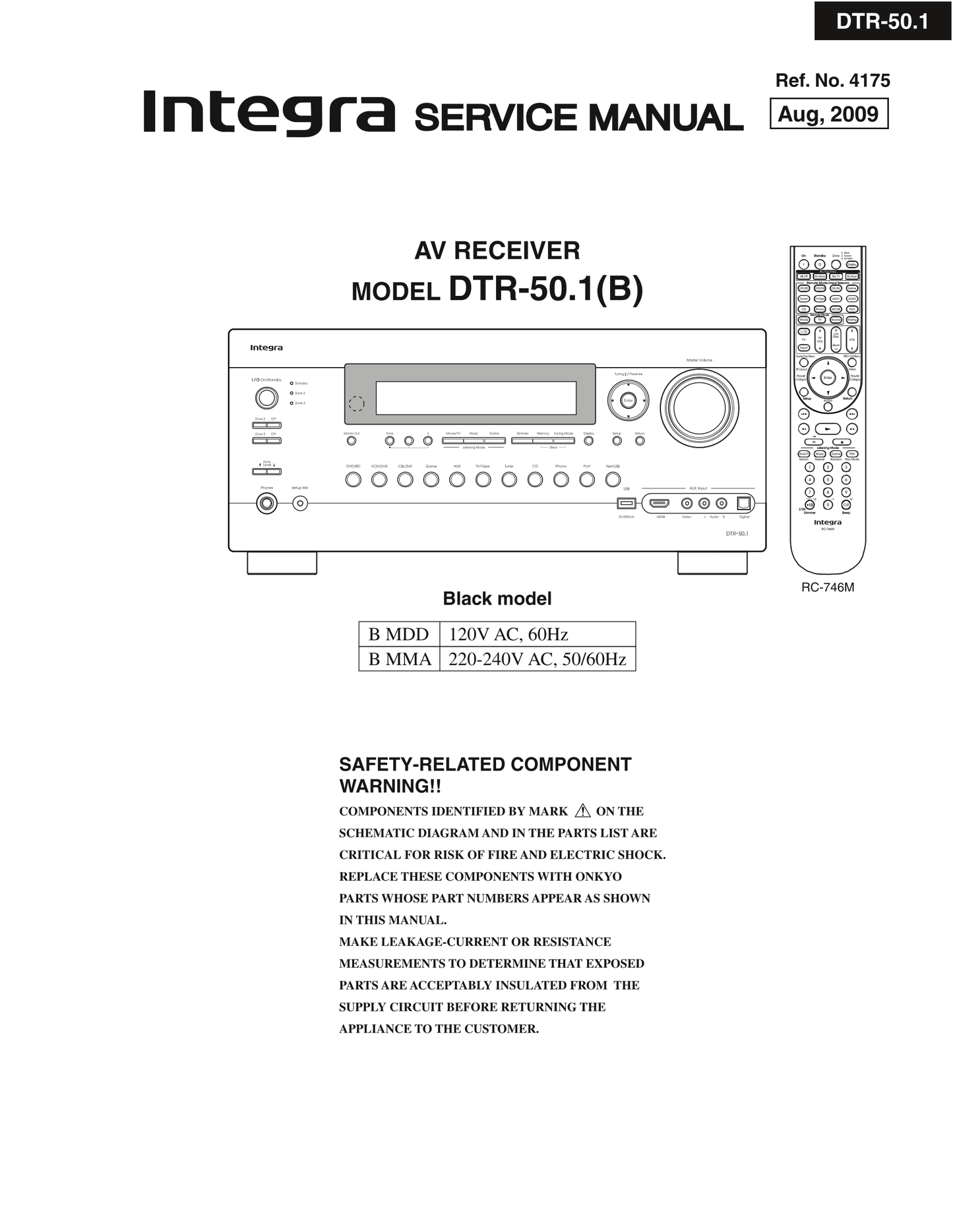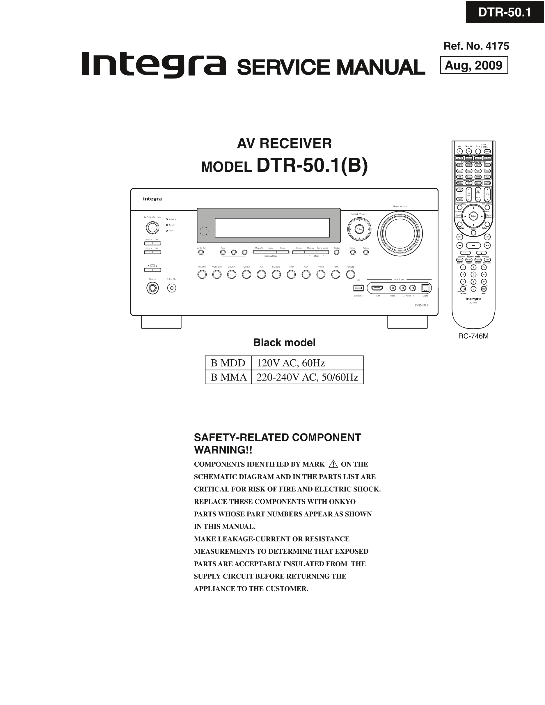 Your Integra DTR-50.1 AV Receiver Service Manual (Pages: 166) manual is available now for immediate download. This manual includes nan pages of detailed information. Choose to download it or get a professionally printed copy from Manuali.