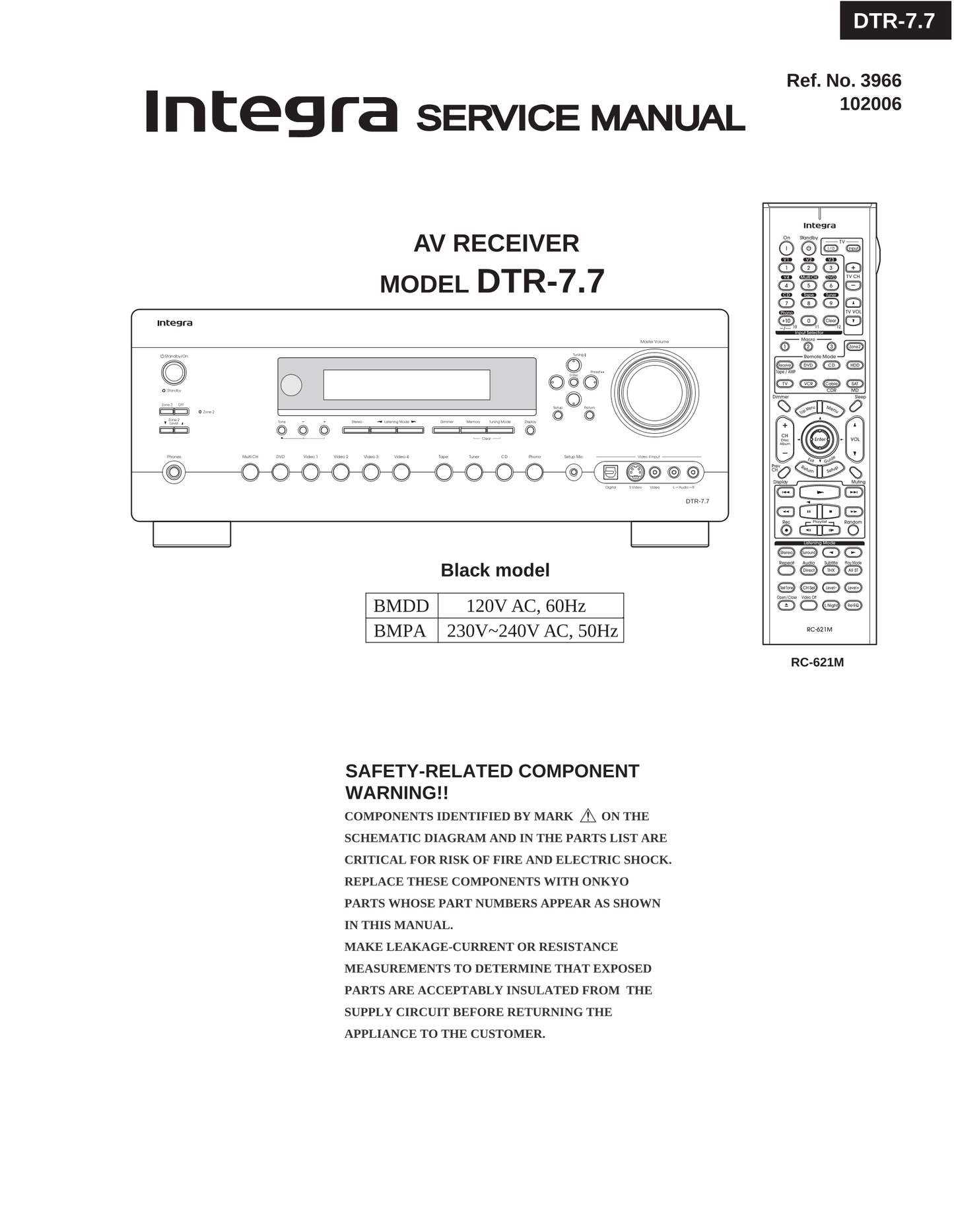 Integra DTR-7.7 AV Receiver Service Manual (Pages: 90)