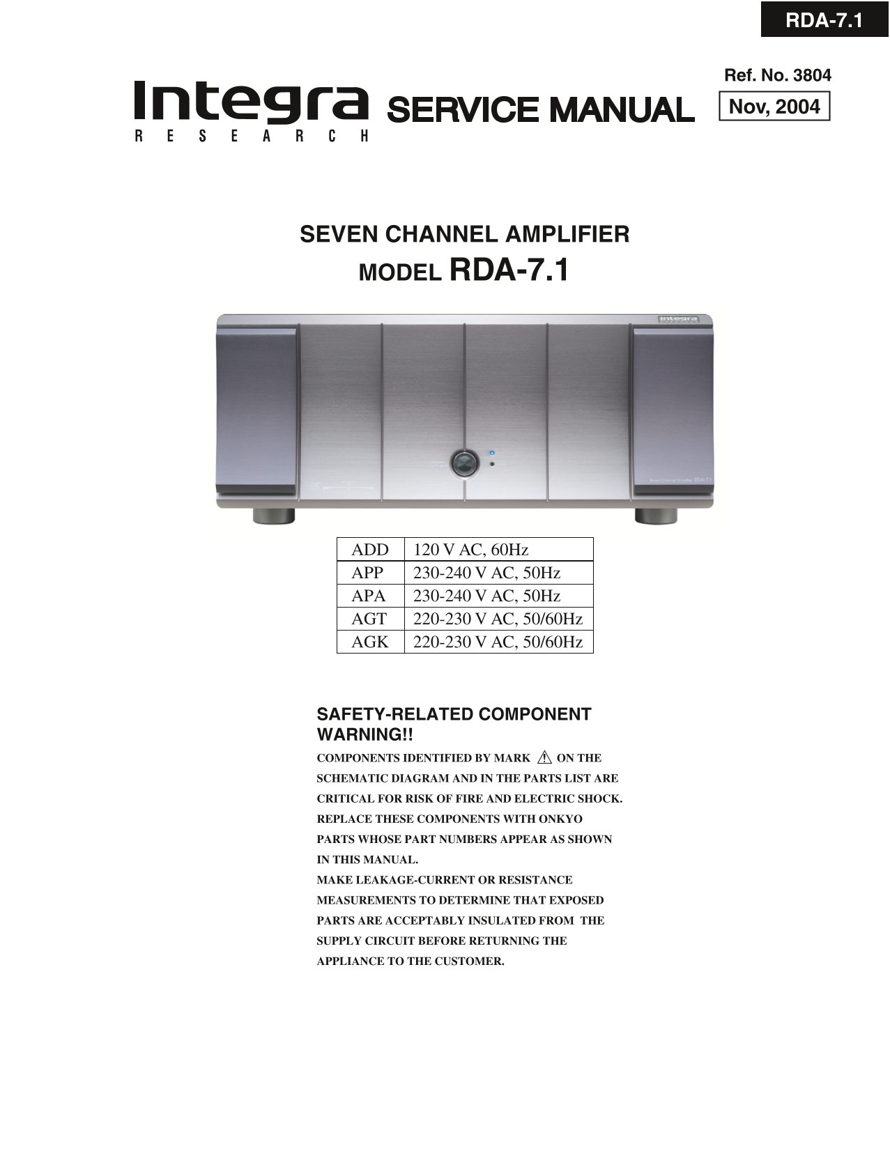 Unlock the full potential of your Integra Integra RDA-7.1 Amplifier Service Manual (Pages: 29), an essential Service Manual for detailed guidance. Available at Manuali with both printed and digital versions. Enjoy our professional printing service for a quality manual tailored to your needs. With 29.0 pages, this manual covers all the essential information.