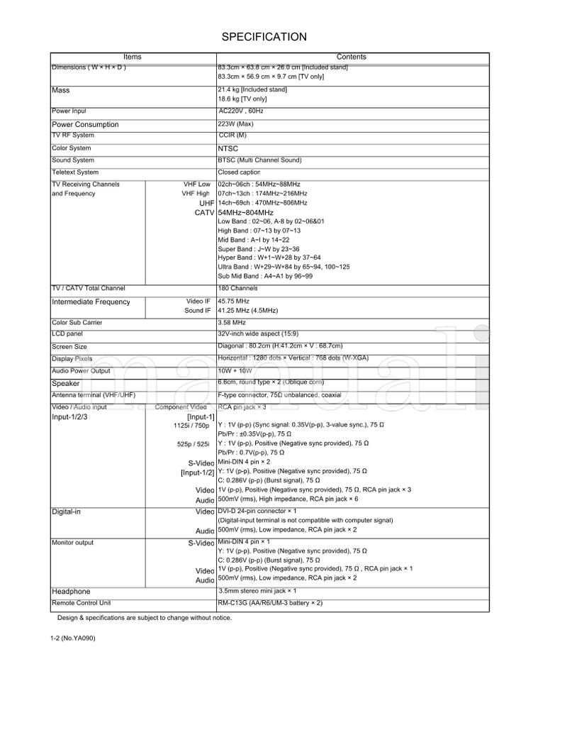 JVC YA090 LT-32WX84 RM-C13G (94 pages) TV Service Manual