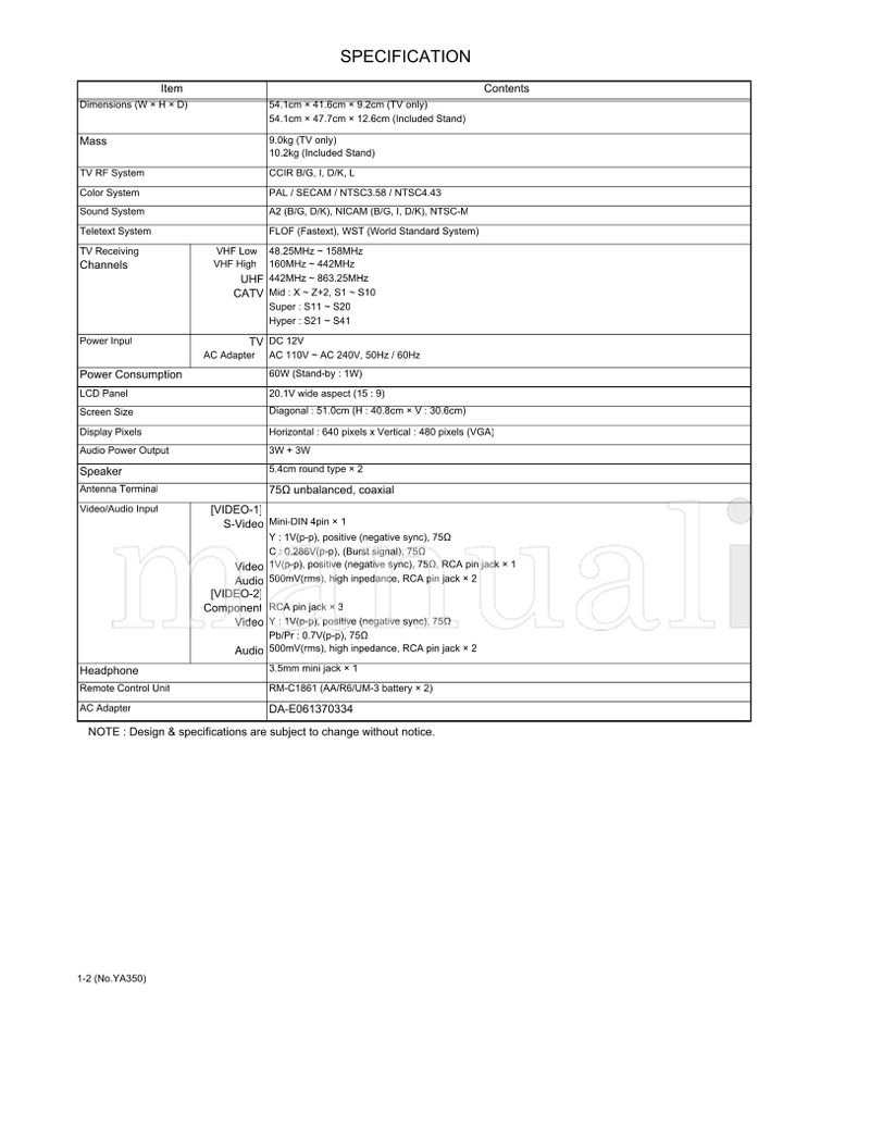 JVC YA350 LT-20A5 (50 pages) TV Service Manual