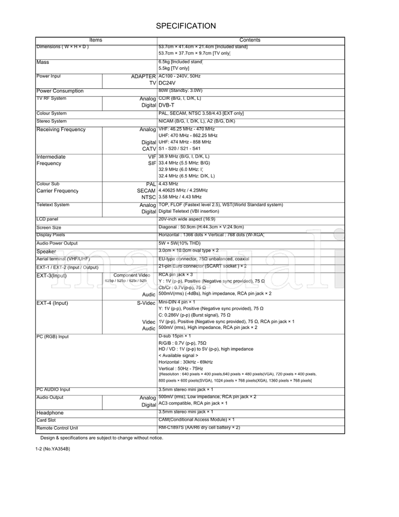 JVC YA354B LT-20DA6SSP (83 pages) TV Service Manual