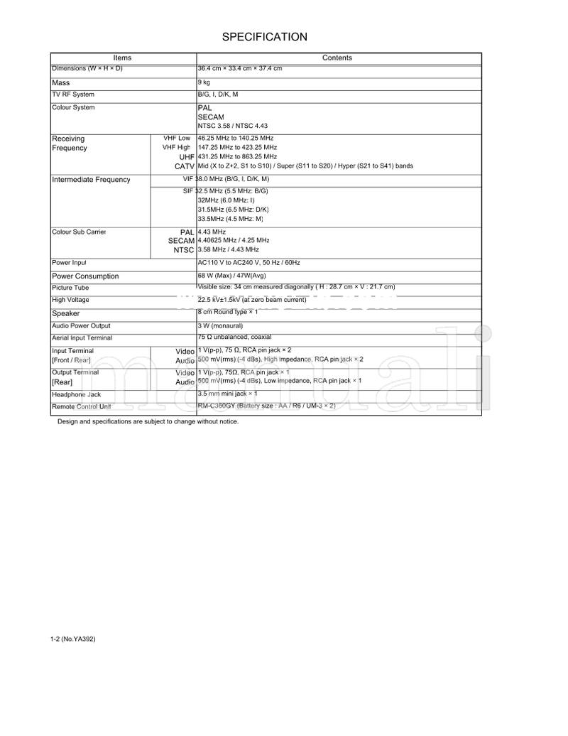 JVC YA392 AV-14AG16 (63 pages) TV Service Manual