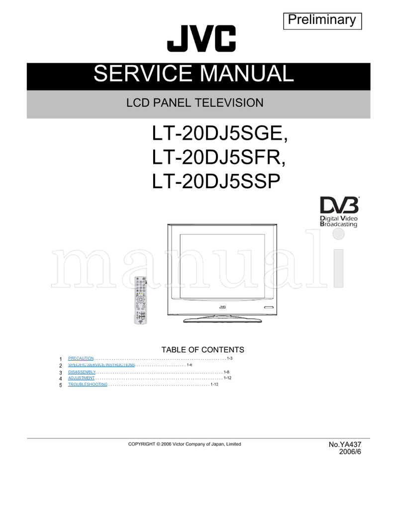 JVC YA437 LT-20DJ5SGE LT-20DJ5SFR LT-20DJ5SSP (51 pages) TV Service Manual