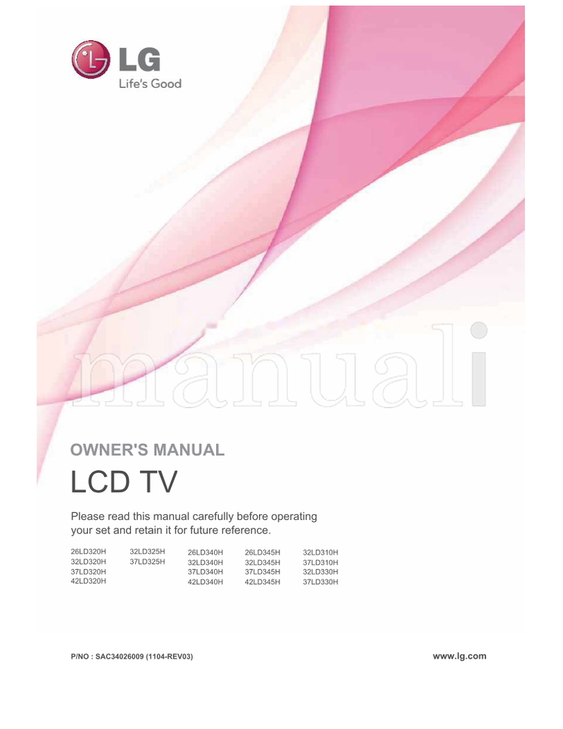 For models: 26LD320H, 26LD340H, 26LD345H, 32LD310H, 32LD320H, 32LD325H, 32LD330H, 32LD340H, 32LD345H, 37LD310H, 37LD320H, 37LD325H, 37LD330H, 37LD340H, 37LD345H, 42LD320H, 42LD340H, 42LD345H, SAC34026009