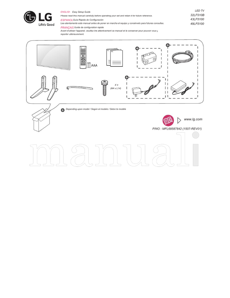 Originally supplied with models: 32LF510B, 43LF5100, 49LF5100, MFL68587842
