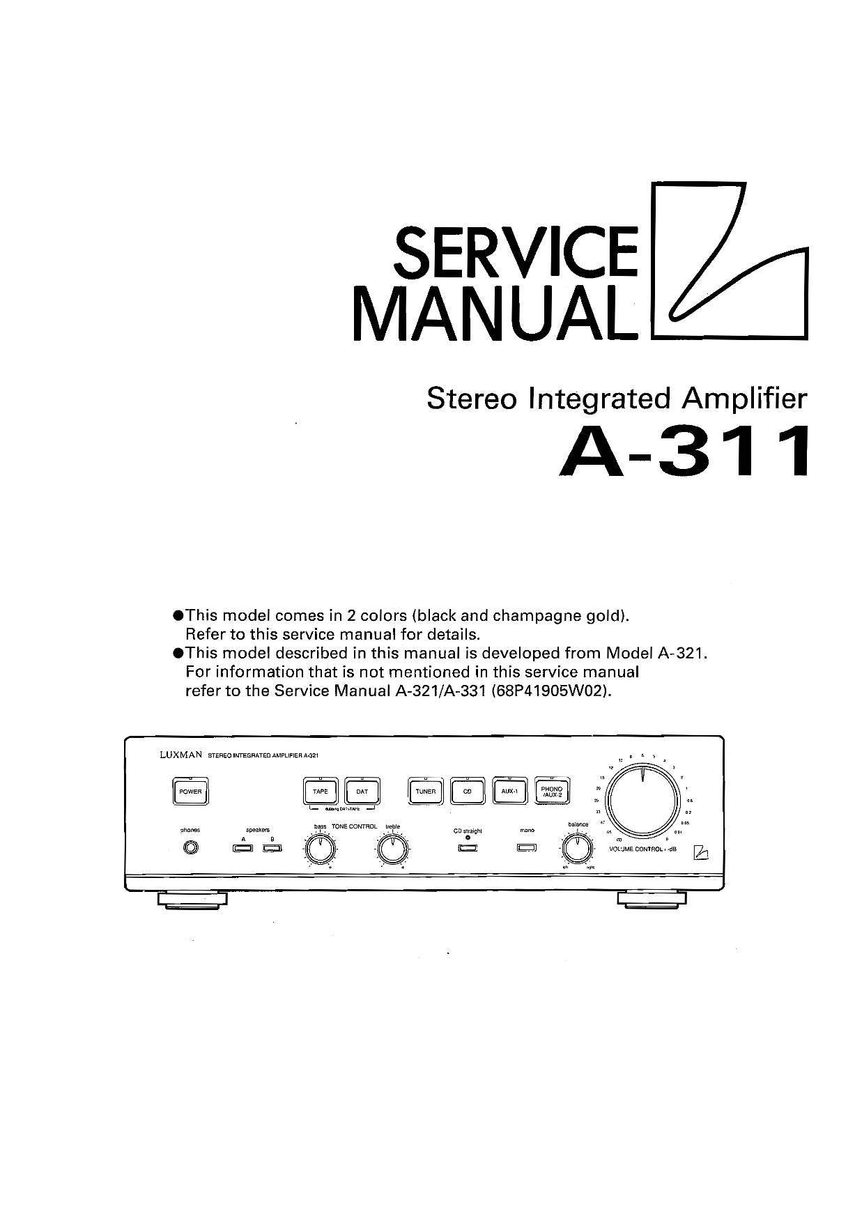 Find the Luxman Luxman A-311 Stereo Amplifier Service Manual (Pages: 28), a must-have Service Manual available exclusively at Manuali. Available at Manuali with both printed and digital versions. Enjoy our professional printing service for a quality manual tailored to your needs. With 28.0 pages, this manual covers all the essential information.