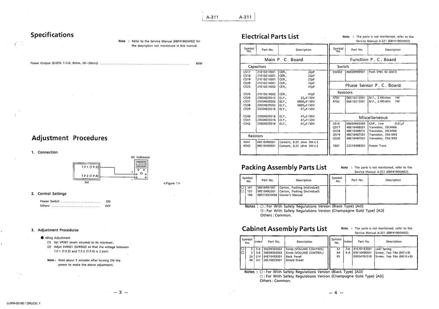Luxman A-311 Stereo Amplifier Service Manual (Pages: 28)