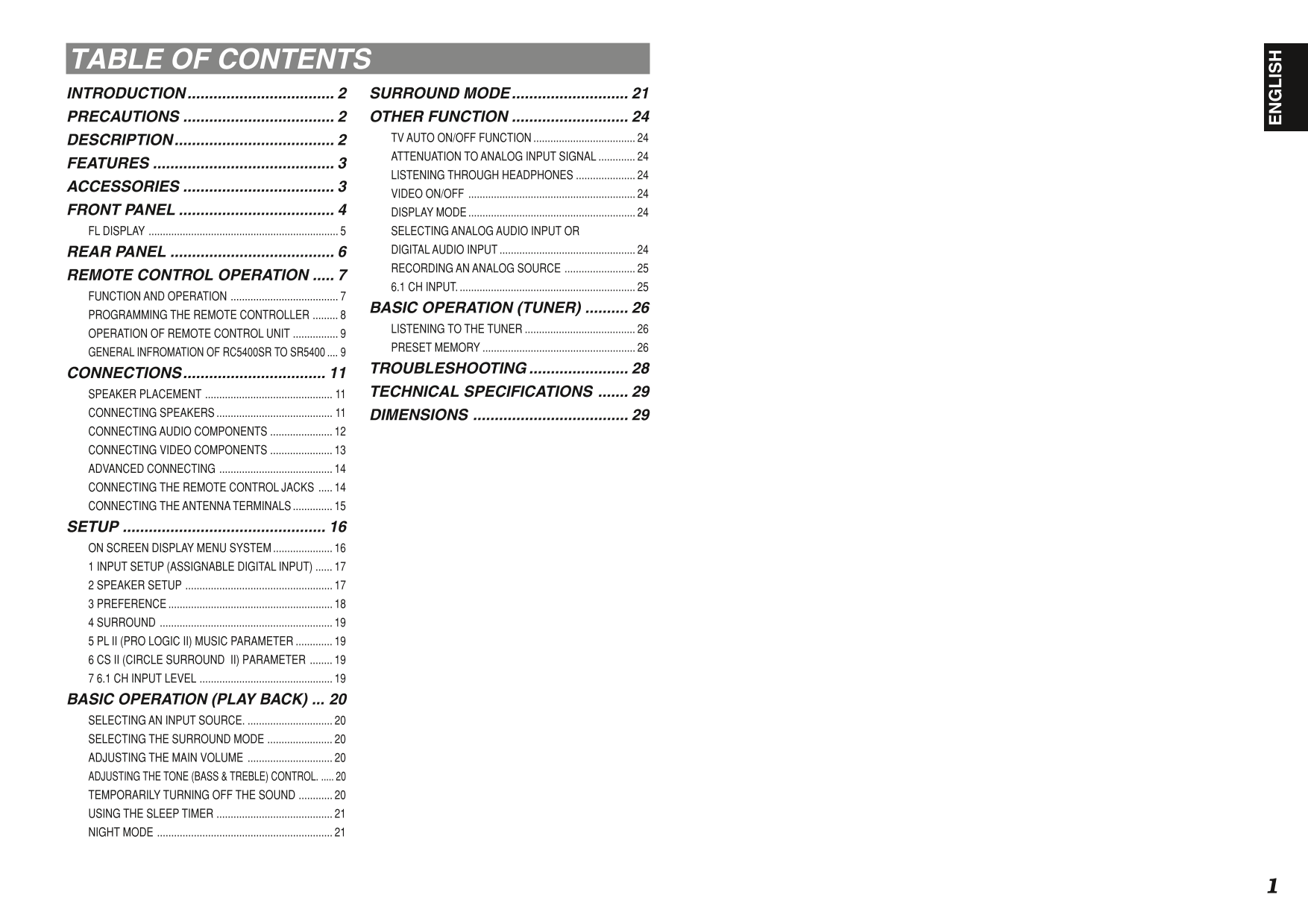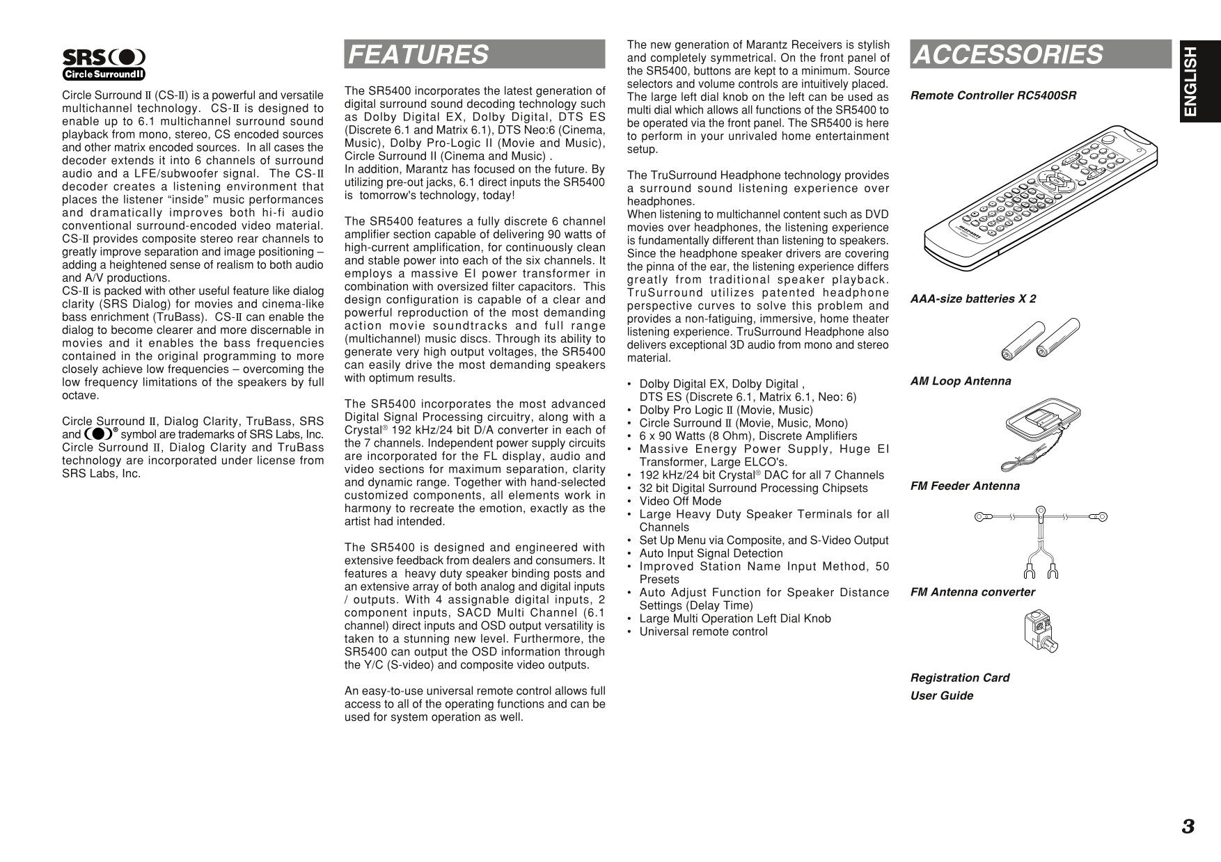 Marantz SR5400 AV Receiver Owner/ User Manual (Pages: 36)