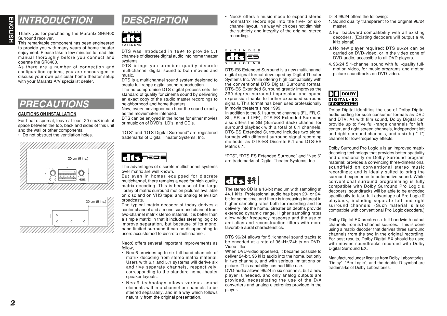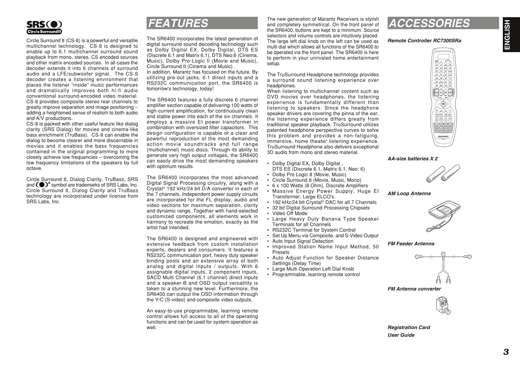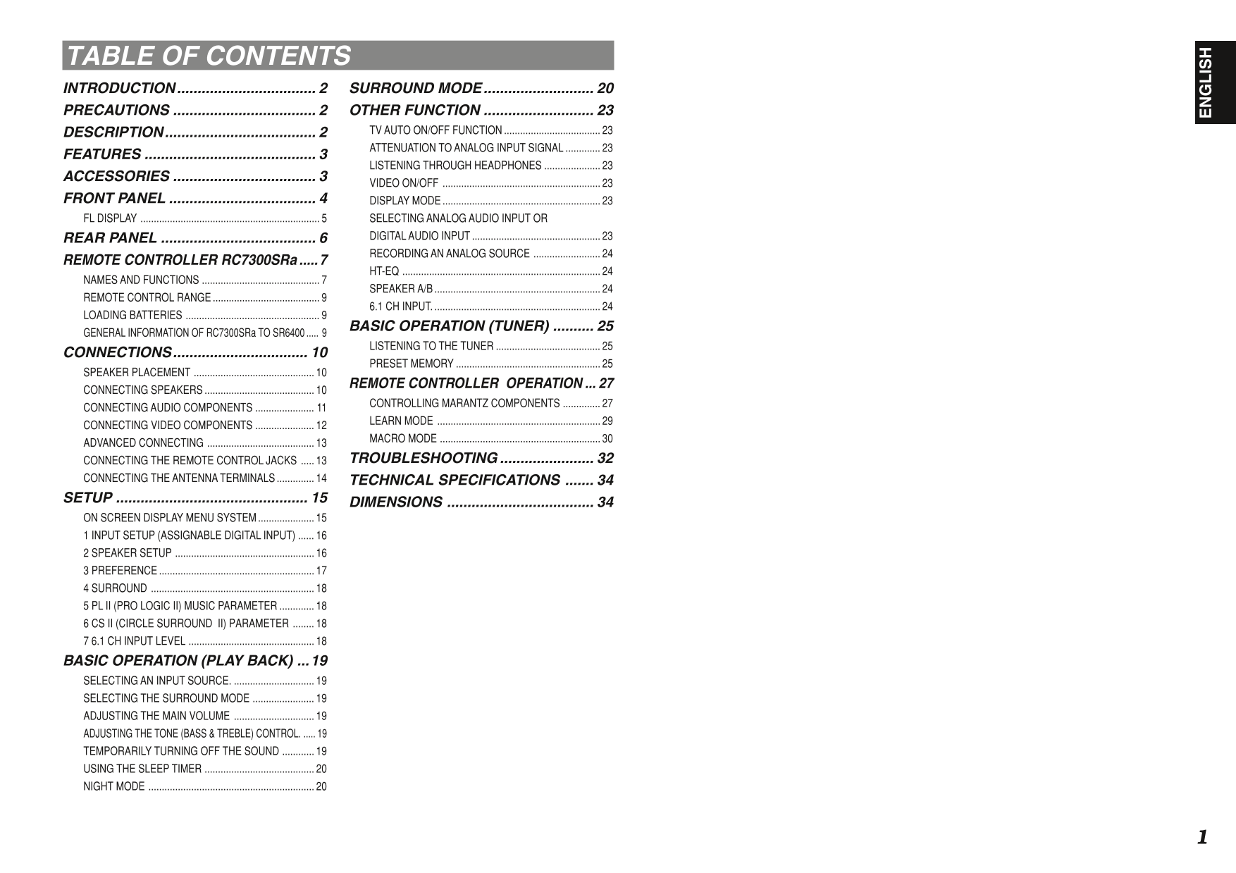 Marantz SR6400 AV Receiver Owner/ User Manual (Pages: 38)
