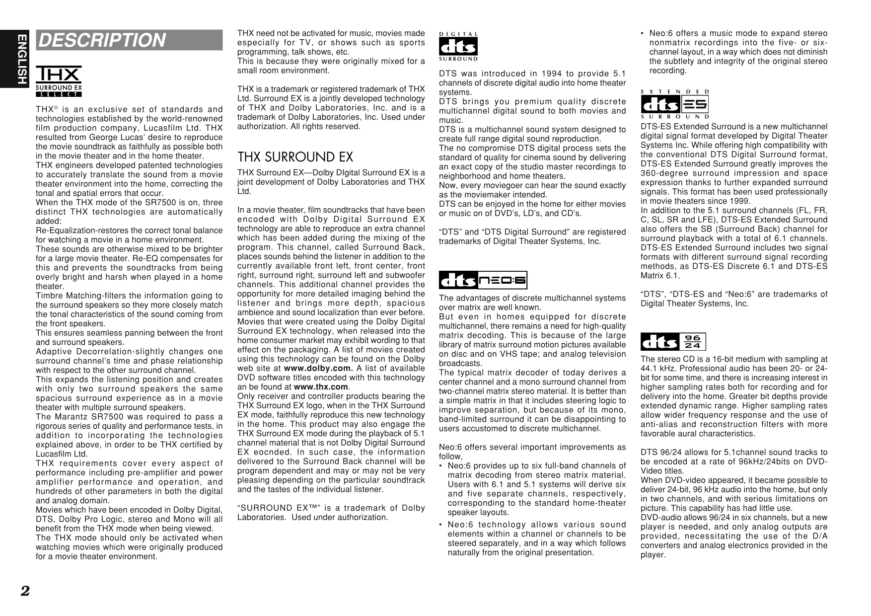 Marantz SR8500 AV Receiver Owner/ User Manual (Pages: 56)