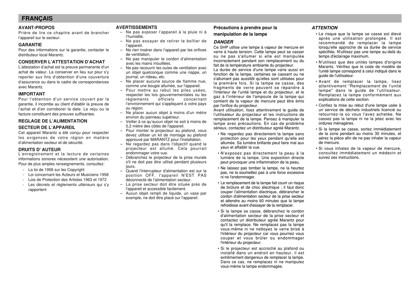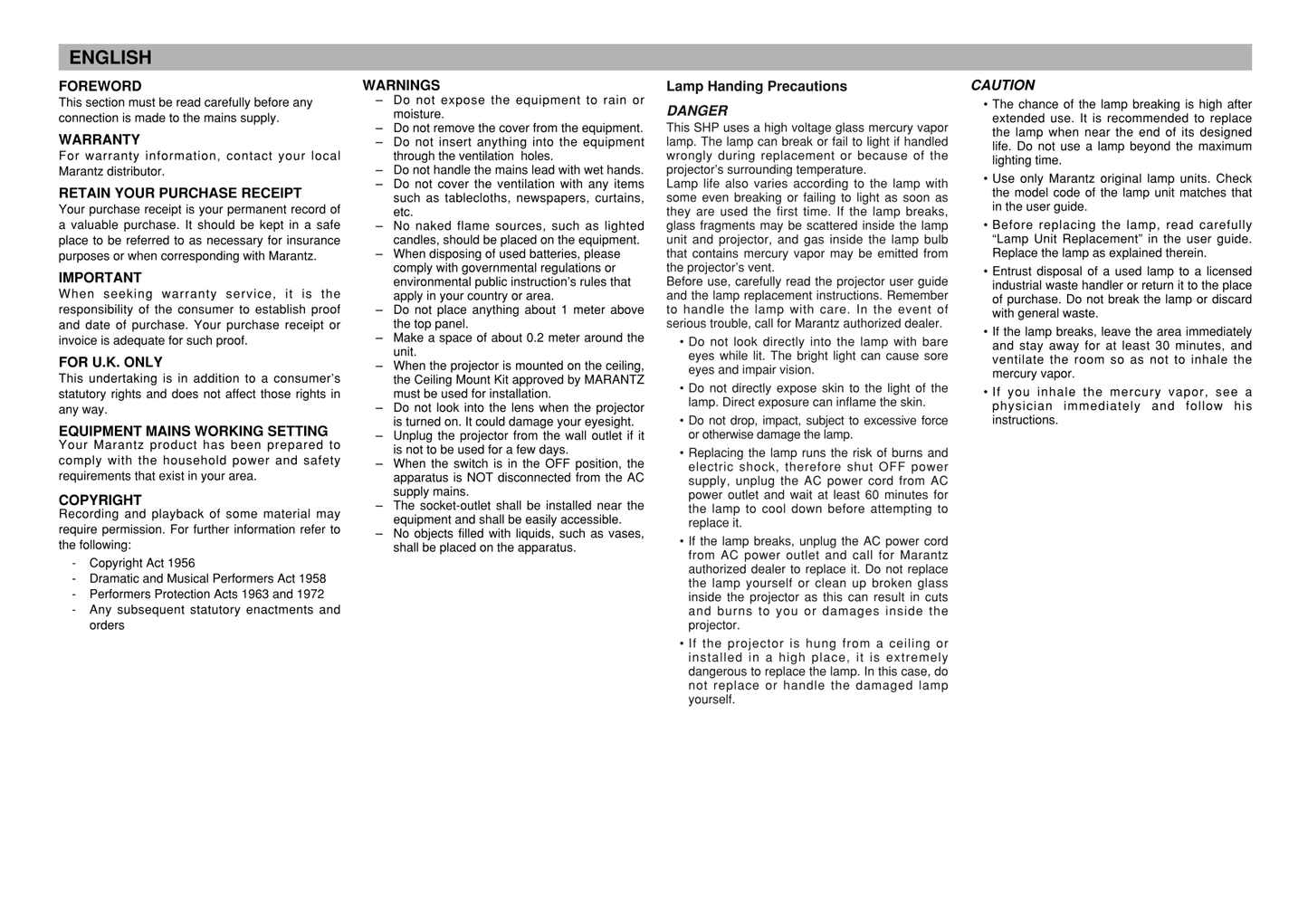 Explore the Marantz Marantz VP-12 S 4 DLP Projector Owner/ User Manual (Pages: 37), your go-to Operating Manual for precise instructions. Available at Manuali with both printed and digital versions. Enjoy our professional printing service for a quality manual tailored to your needs. With 37.0 pages, this manual covers all the essential information.